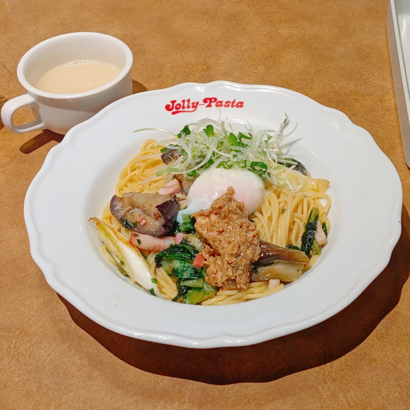☆ #ジョリーパスタ さんの 平日限定ランチ(スープ付)。 和風まぜスパ 979円 〜国産鶏・揚げ茄子・半熟卵〜 @jollypasta_jp #パスタ#パスタランチ#ランチ#お昼ご飯#ジョリパ#平日限定#lunch