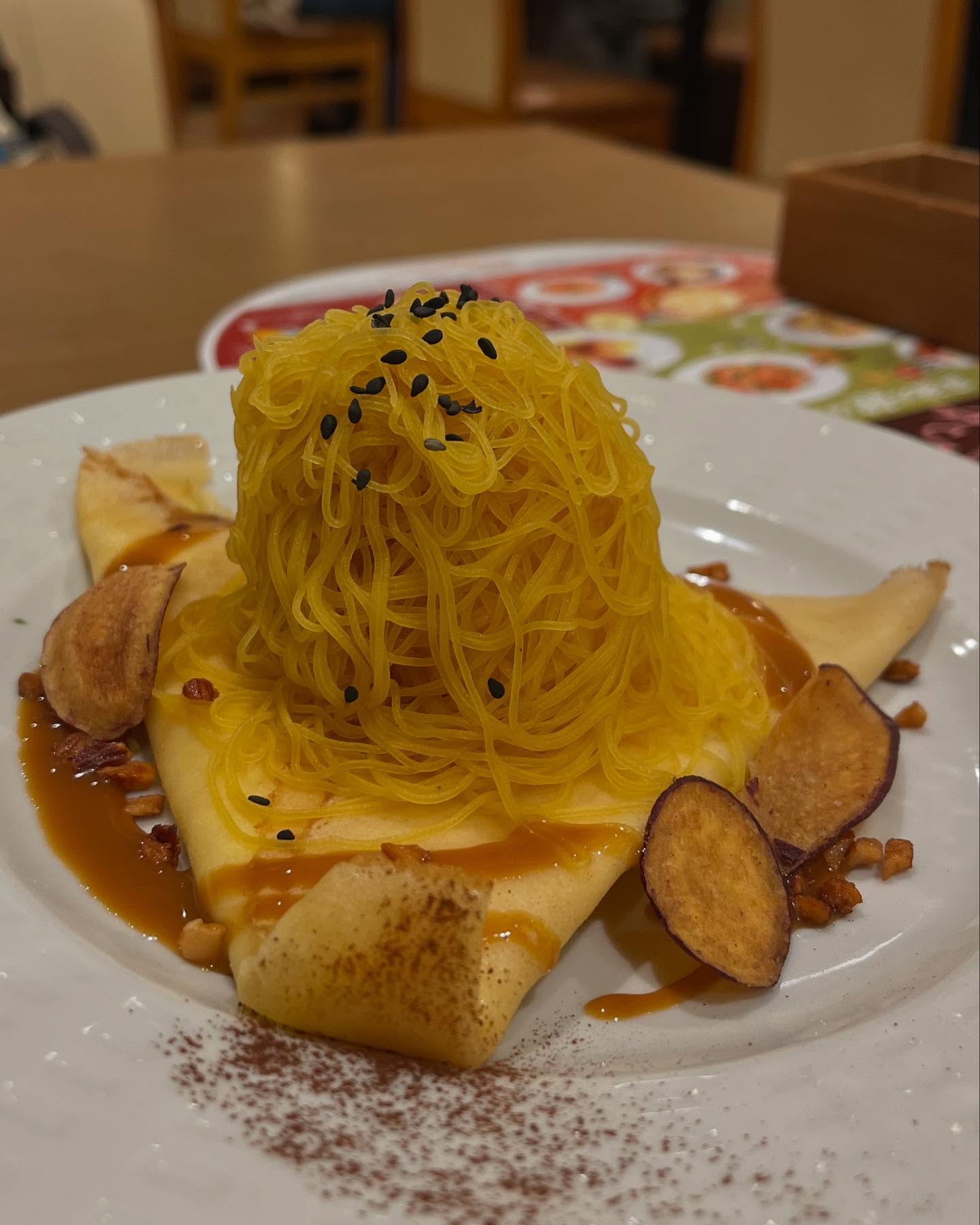 ココスのおいもフェア🍠 おいもンブランのクレープを食べたよ! モンブラン×キャラメルの組み合わせが最高に美味しかった! でも…食べ終わってから気づいた。紅はるかの一口焼き芋、ついてなかった😭笑 #ココス #おいもフェア #おいもンブラン #さつまいもスイーツ #モンブラン好き