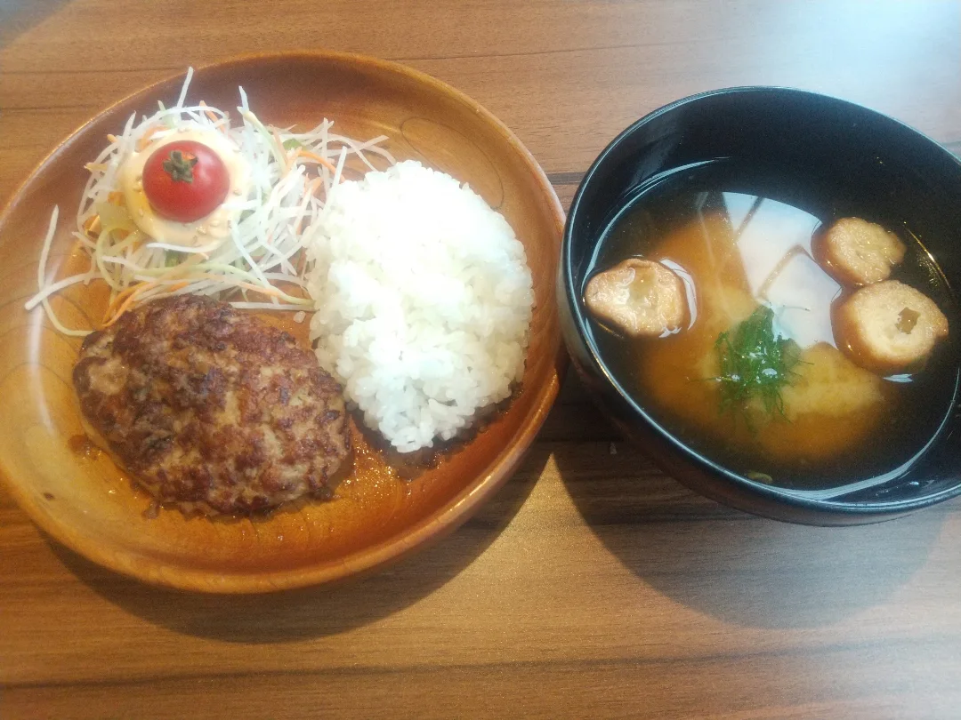 〖びっくりドンキー〗 ミニマムレギュラーバーグデッシュ&味噌汁 モーニングでミニマム😂ドンキーの日替り味噌汁は美味しい✨ #モーニング#モーニングプレート #びっくりドンキー#びっくりドンキーモーニング #びっくりドンキー好き #美味しいもの好きな人と繋がりたい #朝活#朝ごはん#グルメ#ハンバーグ