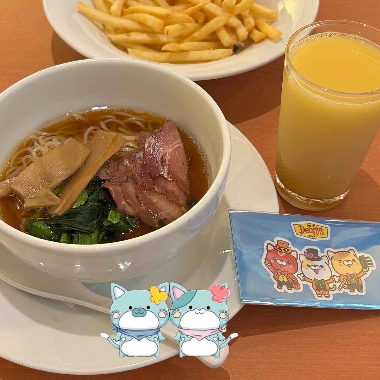 こんにちは🐱💕 デニーズでランチです🍽️ 11/5から始まった頑張る自分に乾杯! KKKPセットのミニ中華麺🍜とドリンクバー☕️ アプリ会員の¥100山盛りポテト🍟と半額パンケーキ🥞 とっても美味しく頂きました🥰 #デニーズ #モンスターテクノロジーSAMURAI #ぴっちーチョマちゃん #株式会社おまけ #CTime