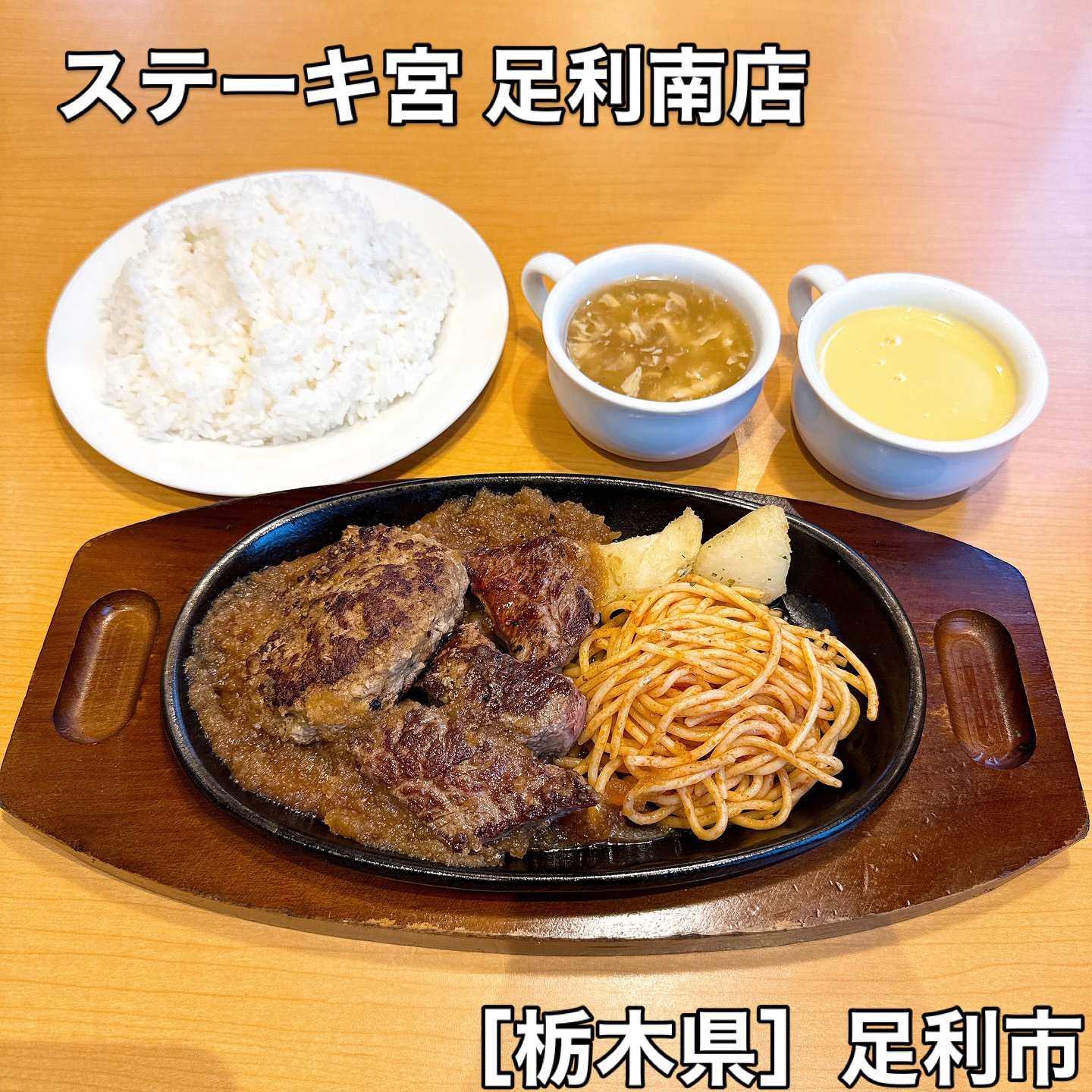 2025年10月26日(日)ランチ ステーキ宮 足利南店 ◆宮ハンバーグ120g & チャックテールフラップカットステーキ80g 1,914円 #ステーキ宮 #ステーキ宮足利南店 #栃木県 #足利市 #ステーキ #チャックテールフラップ #ハンバーグ #スープバー #コーンポタージュスープ #鶏肉としいたけのスープ #ライススープおかわり自由 #16時までランチ