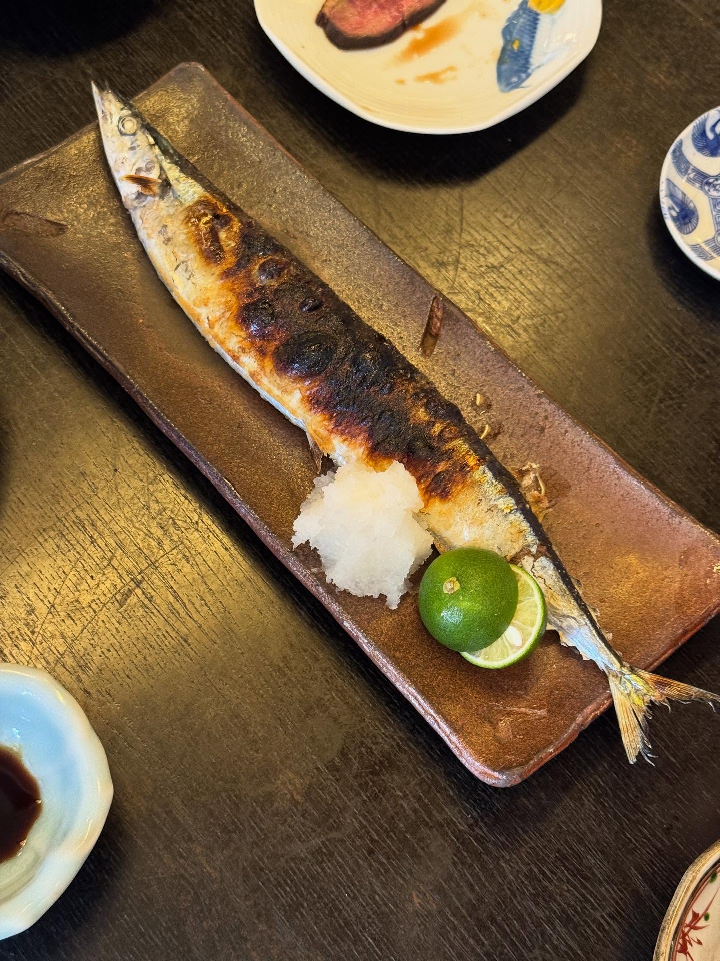 京都 #そば鶴 さんにて念願の昼飲み🍶 奇跡のタイミングで友人と合流 立派な秋刀魚と美味しいご飯にうっとりでした
