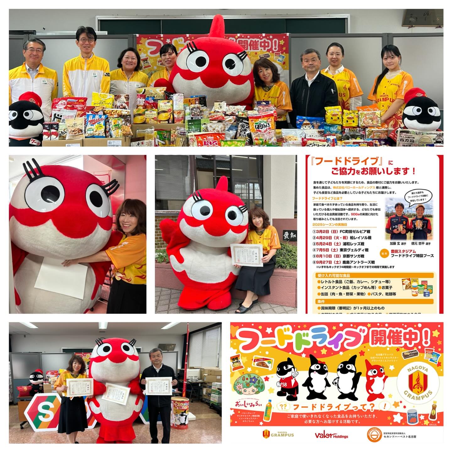 『ひとり親家庭の子どもたちへ食品を!』〜名古屋グランパス✖️バローホールディングスSDGsアクション〜 本日10月21日、愛知母子福祉会館1階会議室にて、『フードドライブ』食品贈呈式セレモニーがありました⚽️ グララちゃん、たくさんのフードドライブのご寄付をありがとうございました⚽️ 名古屋グランパス様は、株式会社バローホールディングス様ありがとうございました⚽️ 名古屋グランパス様と株式会社バローホールディングス様に感謝状を贈呈させていただきました⭐️ 名古屋グランパス / Nagoya Grampus職員向井さん、バローホールディングス秋元室長さん始め職員の皆様、明治安田生命の皆様、ご支援ありがとうございました💕篤志家の皆様のご寄附からの食品と合わせて100個のスペシャルな『スマイルBOX』(グランパスグッズ入り)を作成して、皆様の温かいご厚意も添えて贈らせていただく予定です💕募集は追ってお知らせします❤️ 更に、バローホールディングス様より、体験の機会の少ないひとり親家庭の親子にサッカー観戦の機会をと、ペア15組、チケット30枚のご寄付を賜りました。子ども達に明るい笑顔を届けることが叶います。温かいご厚意のご寄付に感謝申し上げます🙇♀️ #名古屋グランパス #バローホールディングス #ひとり親家庭の親子に明るい笑顔と元気を届ける #グランパスとバローホールディングス連携フードドライブ #グランパスSDGsアクション #グララちゃん #フードドライブ #スマイルBOX #明治安田生命保険相互会社 #社会福祉法人愛知県母子寡婦福祉連合会