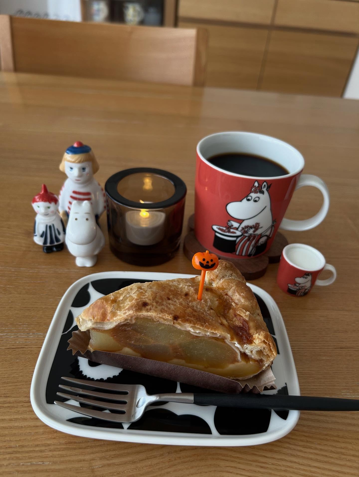 2025.10.19 アサカシタイム☕️ "青森県産2種の りんごカスタードアップルパイ" 大きなりんごがごろごろっと😋 実はリピート。 美味しすぎた😅 #スターバックスコーヒー 愛用している🎃のピック。 手軽にハロウィンスイーツが完成です。 #今日のムーマグ "旧ママ" #moominarabiajp#ムーミンマグ #北欧食器#マリメッコ食器 #moomin#scope_japan#kivi #スコープ別注#おうちカフェ #ビヨルクコースター#クチポール #ミニマグにミルク#スタバスイーツ