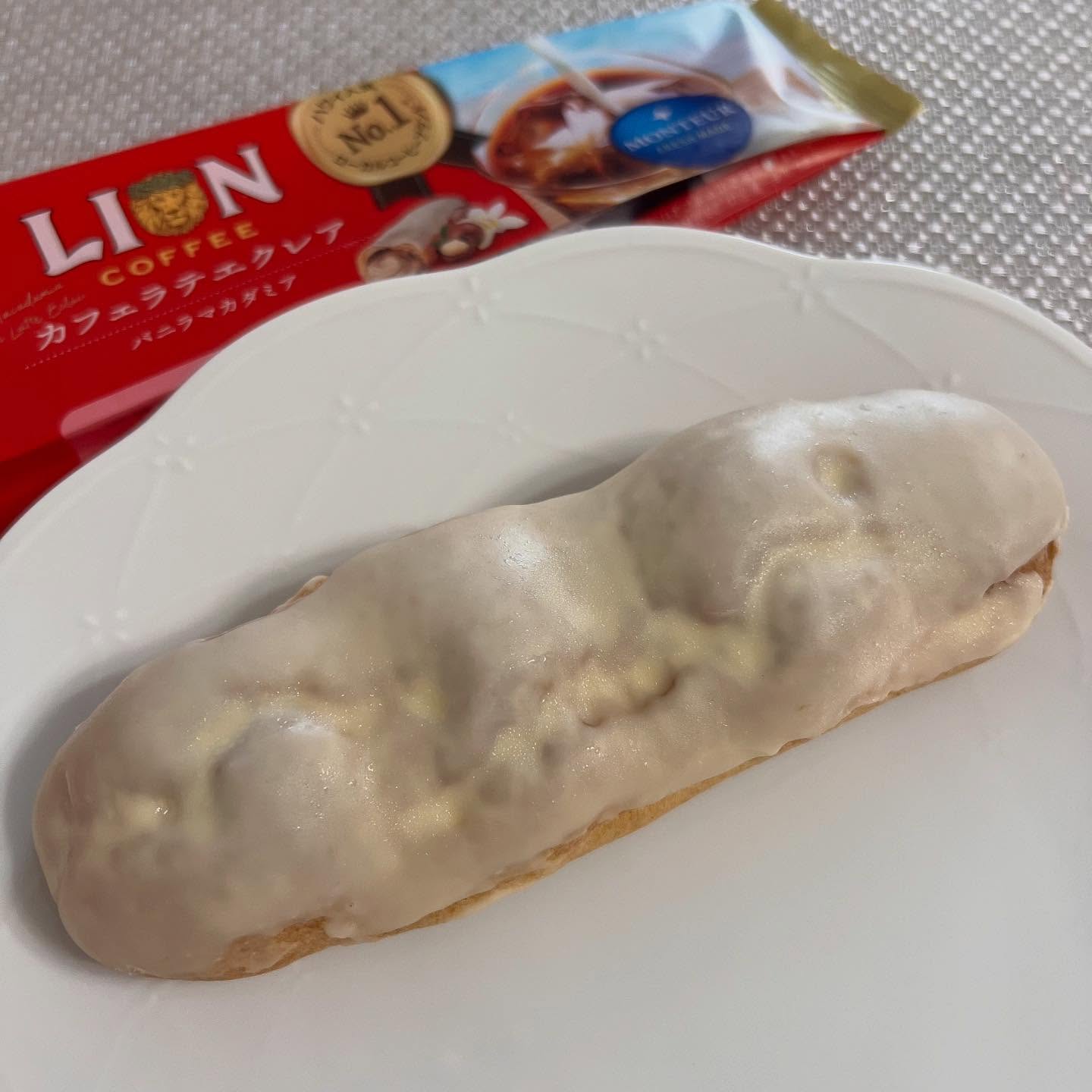 【2025年9月】 . @monteur_sweets 『モンテール』 × @lioncoffee_japan 『ライオンコーヒー』 . カフェラテエクレア 138円(196kcal) . . ライオンコーヒーのコラボスイーツ✨ 気になっていて、割引シール付きを見つけて 買いました🤭 . とても美味しかった😋💕 . . . #ライオンコーヒーカフェラテエクレア #カフェラテエクレア #カフェラテ #バニラマカダミア #ライオンコーヒーバニラマカダミア #エクレア #モンテール #monteur #ライオンコーヒー #lioncoffee #コラボスイーツ #コラボ商品 #スイーツ