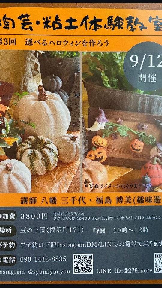 先日、9/12に姫路市福沢町にある豆の王国さんにて第3回陶芸粘土体験教室開催しました...
