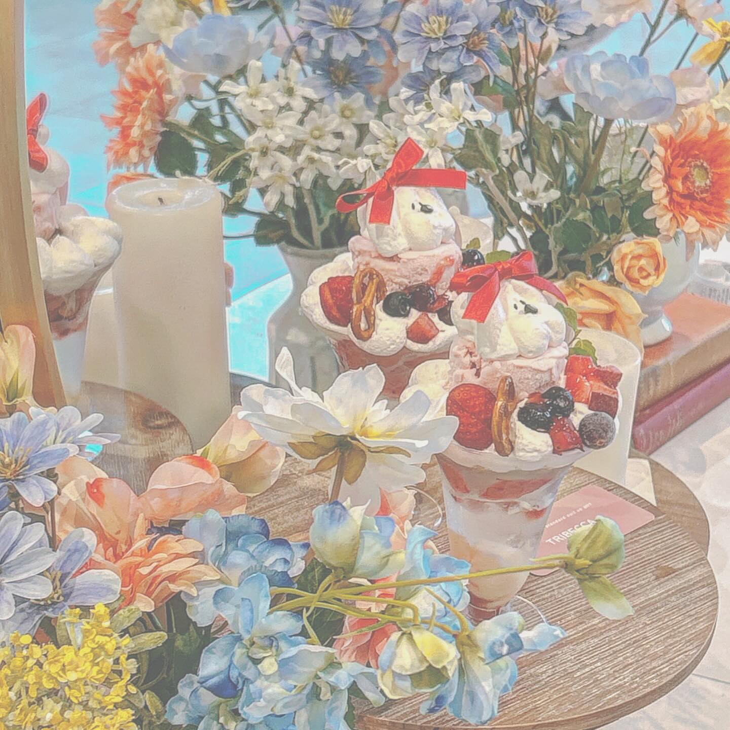 HEP FIVEの7階にTRIBECCA CAFEが期間限定でオープンしてた💐写真はアサイーパフェ...