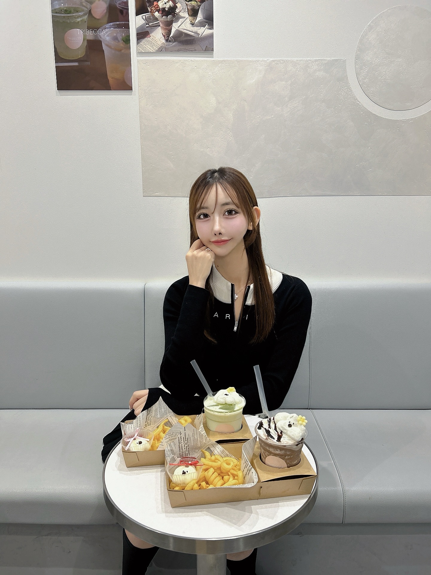 かなちゃんとおそろコーデでカフェ🎀☕️
