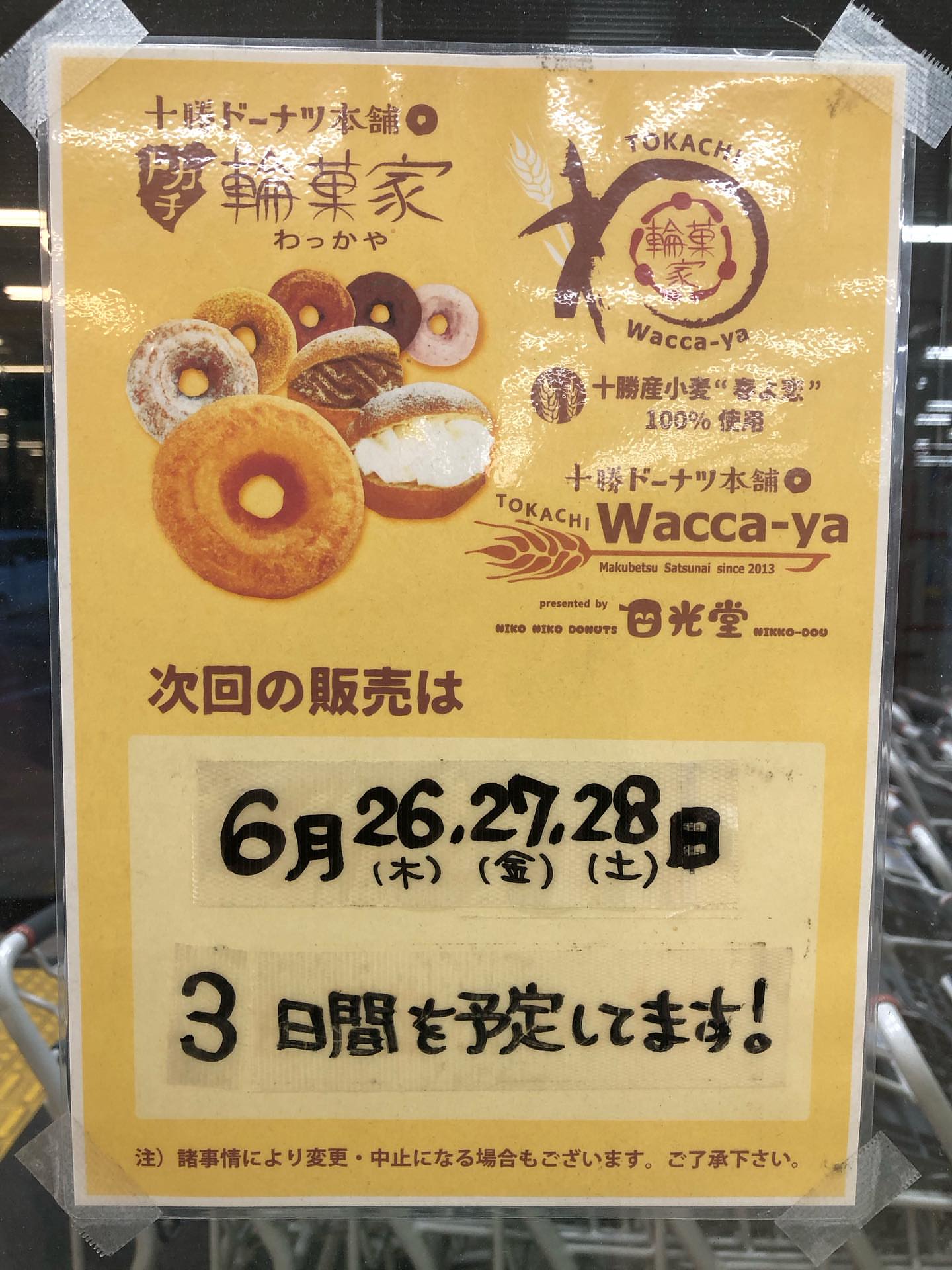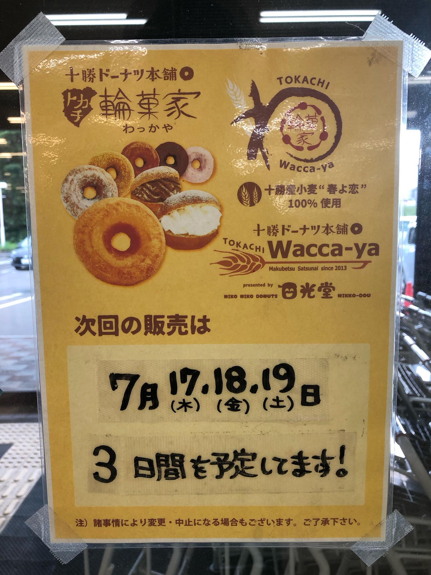 7月17日から19日まで連絡通路に十勝のドーナツ輪菓家さんが臨時出店致します。