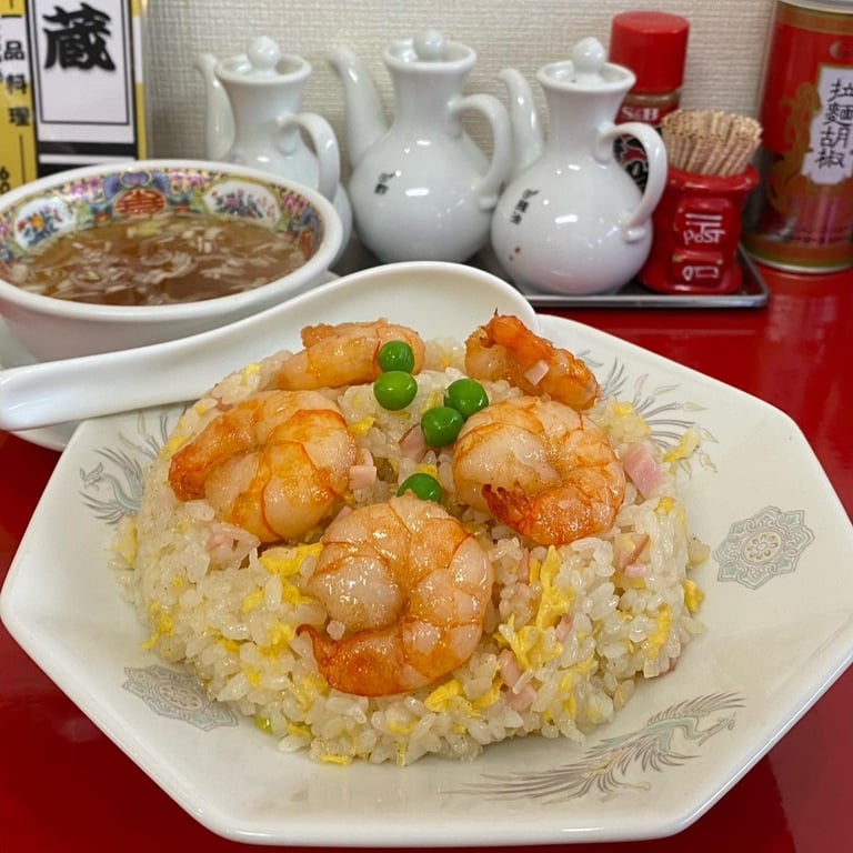平塚市の住宅街にひっそりと佇む人気中華店です。看板メニューの海老チャーハンはプリプリ海老5尾入りで、薄味ながら海老の旨味がしっかりしています。餃子も大ぶりで具沢山、ニラレバは肉厚で臭みはありません。駐車場4台あり、昼夜とも混雑します。