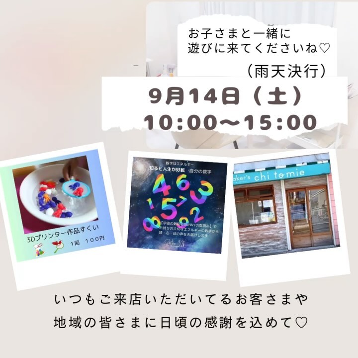 9月14日(土) 10時〜15時 (雨天決...