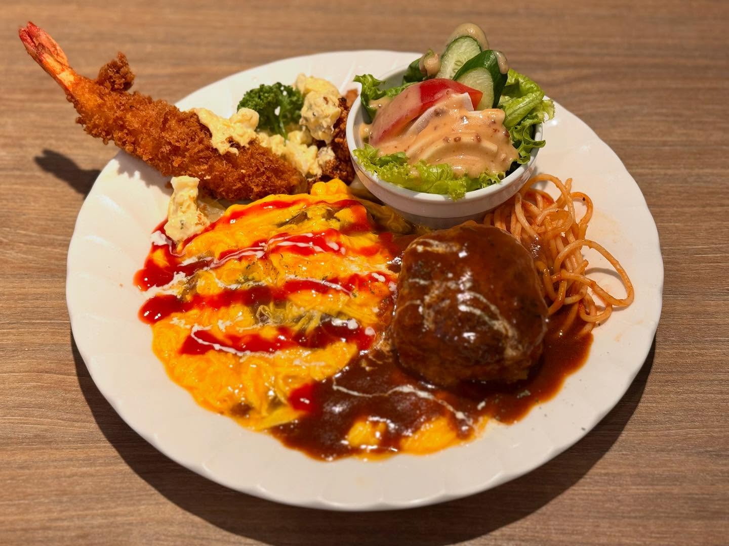 #はしぐち亭 #ホームランプレートランチ #ちとかライス #オムちとかライス #オムライス #ハンバーグ #海老フライ #ナポリタン #唐揚げ