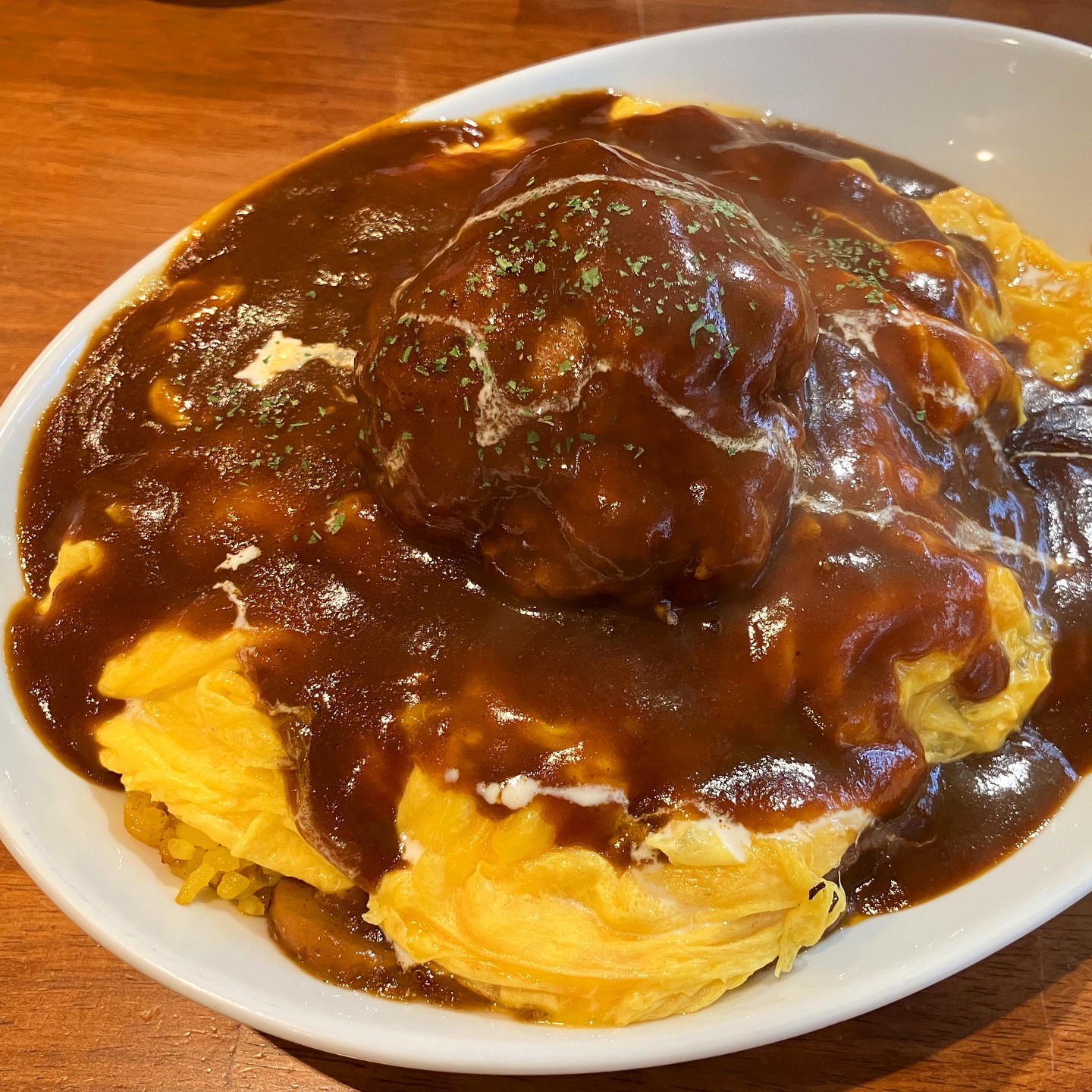 経堂 はしぐち亭でちかとライスと大人のオムちとかライス辛口にハンバーグのせで。...