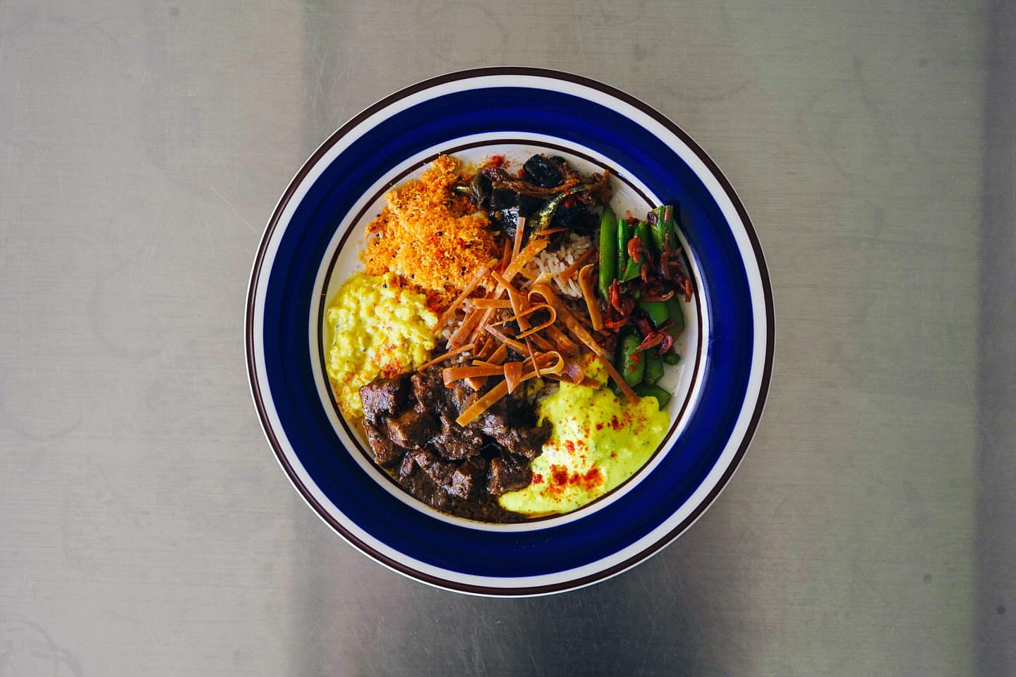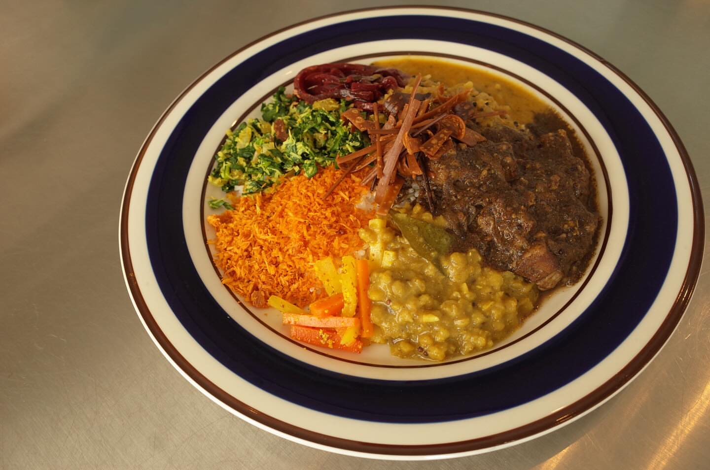 お皿の上で全部混ぜて食べるスリランカのカレー...