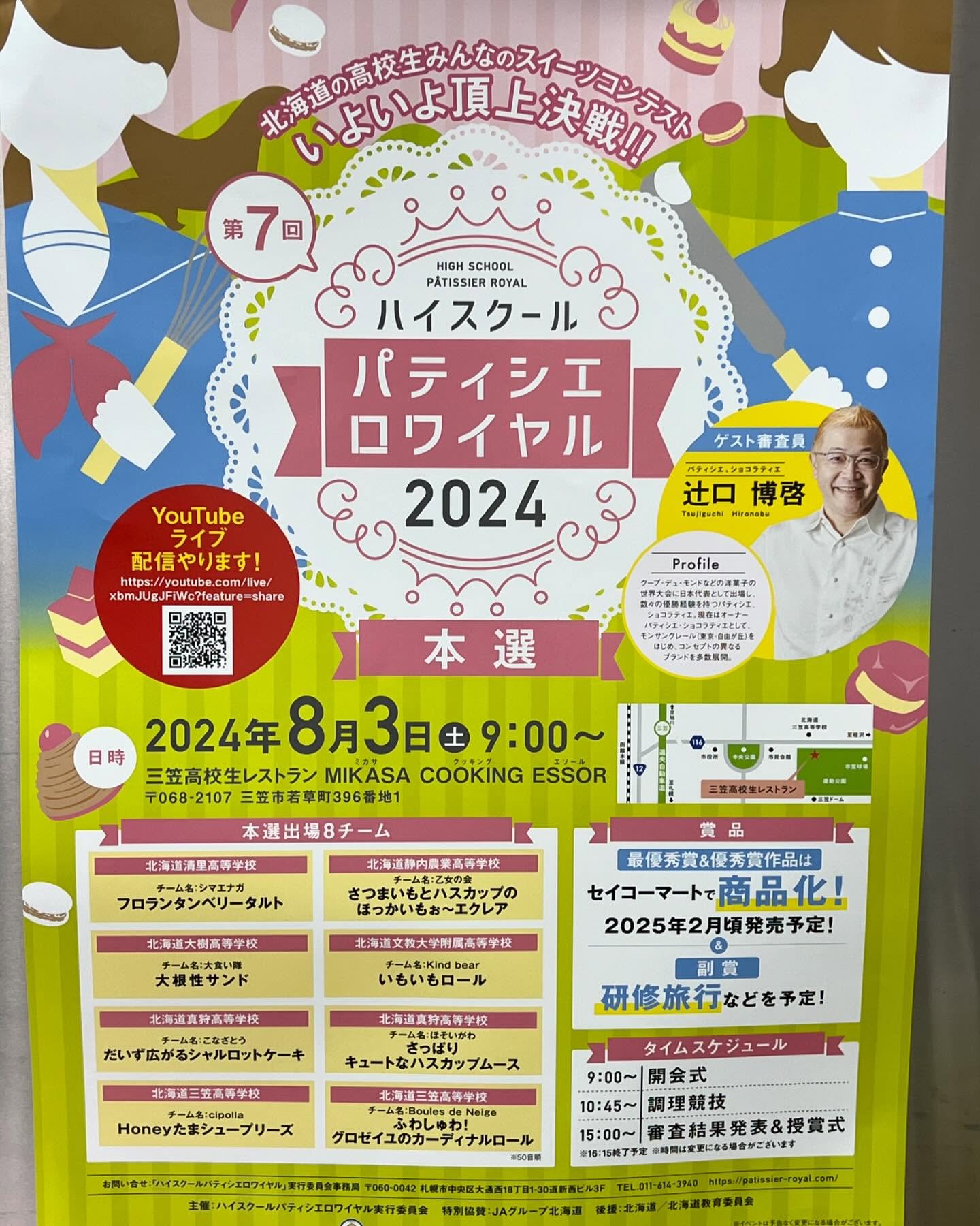 只今北海道三笠市にある施設で北海道全道で高校生パティシエロワイヤル2024ゲスト審査員を今年で6年間務めさせて頂いています。