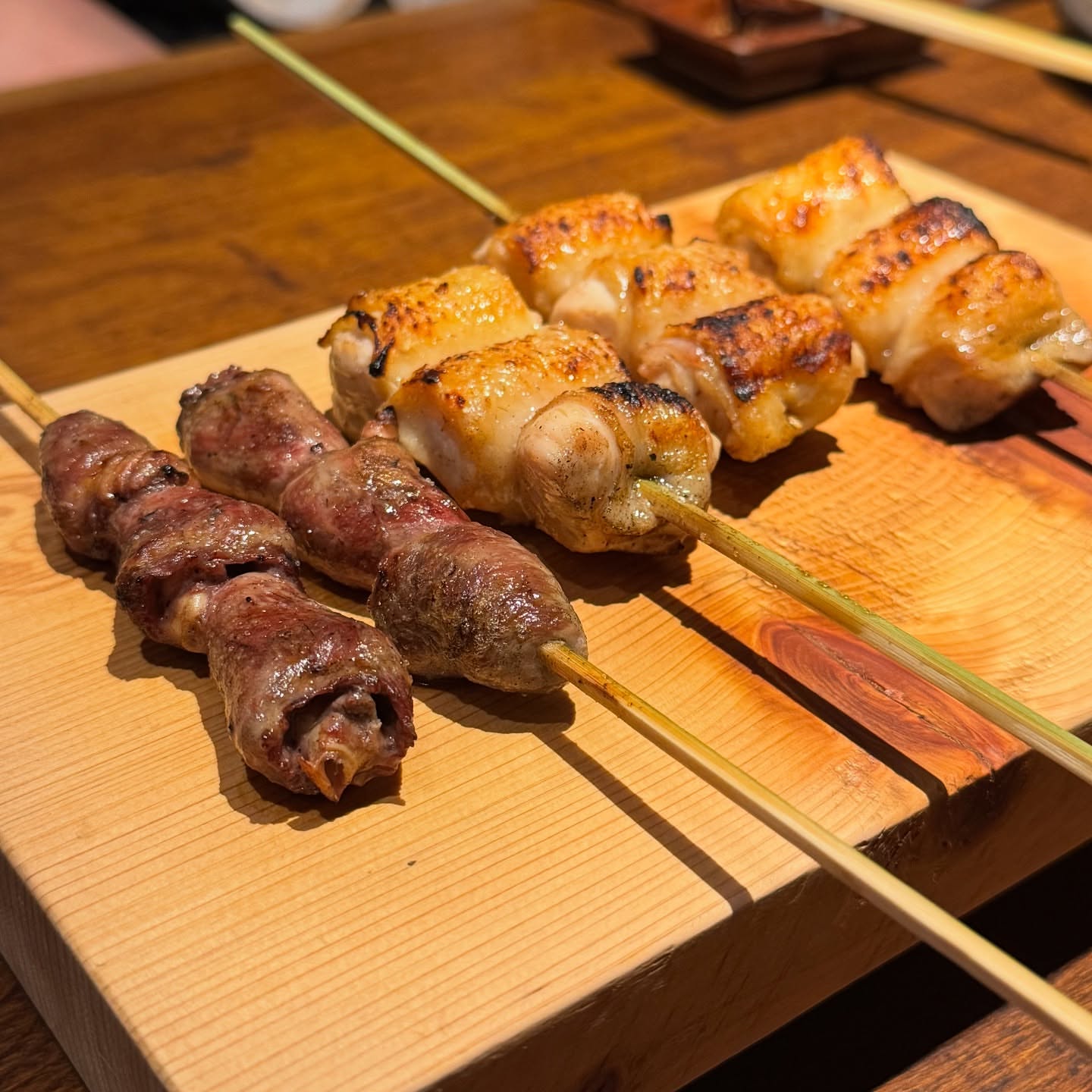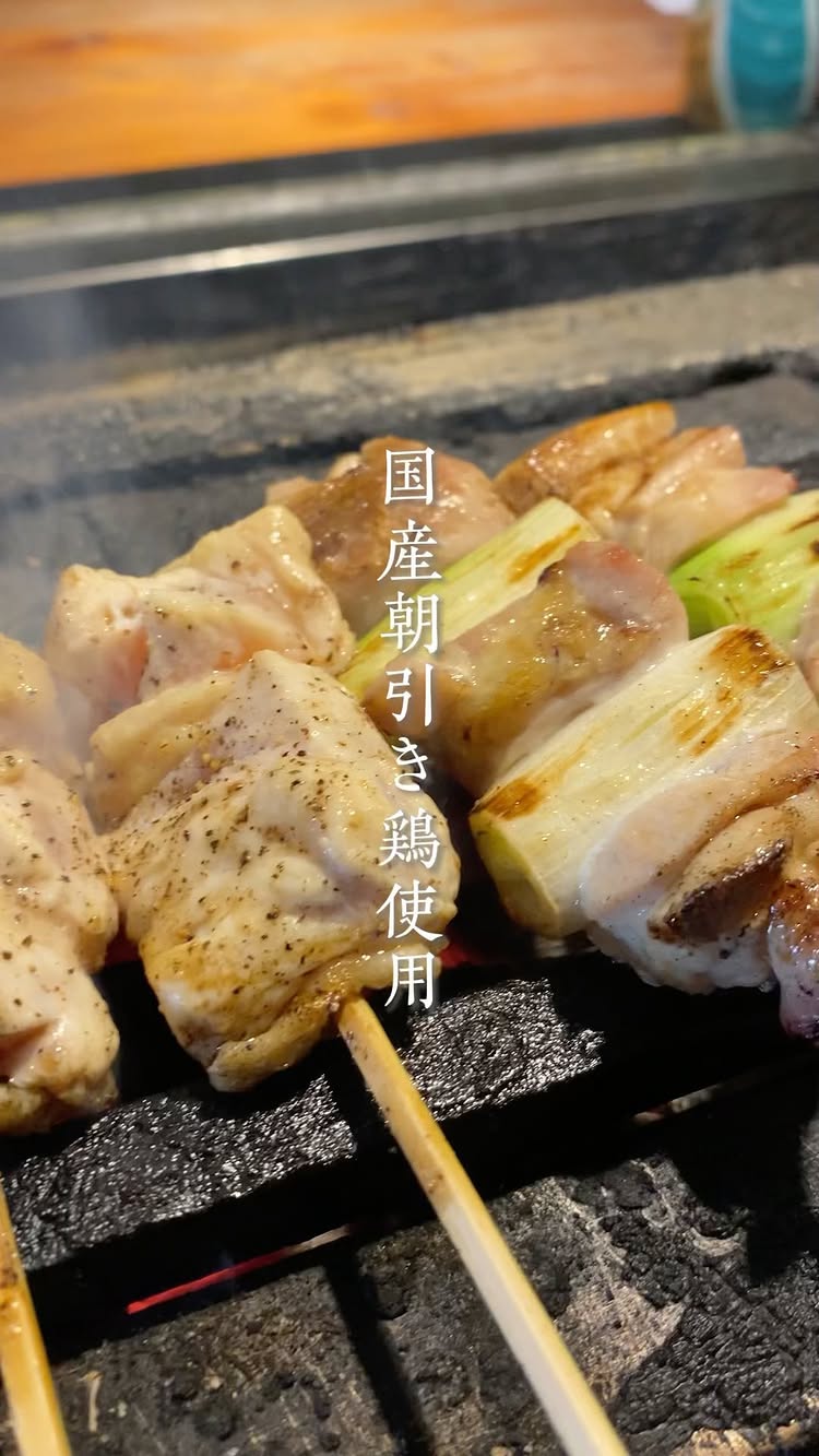 鶏肉は国産の朝引き鶏を使い、国産備長炭で1本ずつ丁寧に焼いてくれます✨️