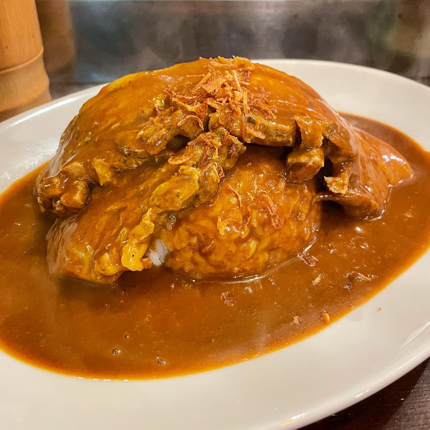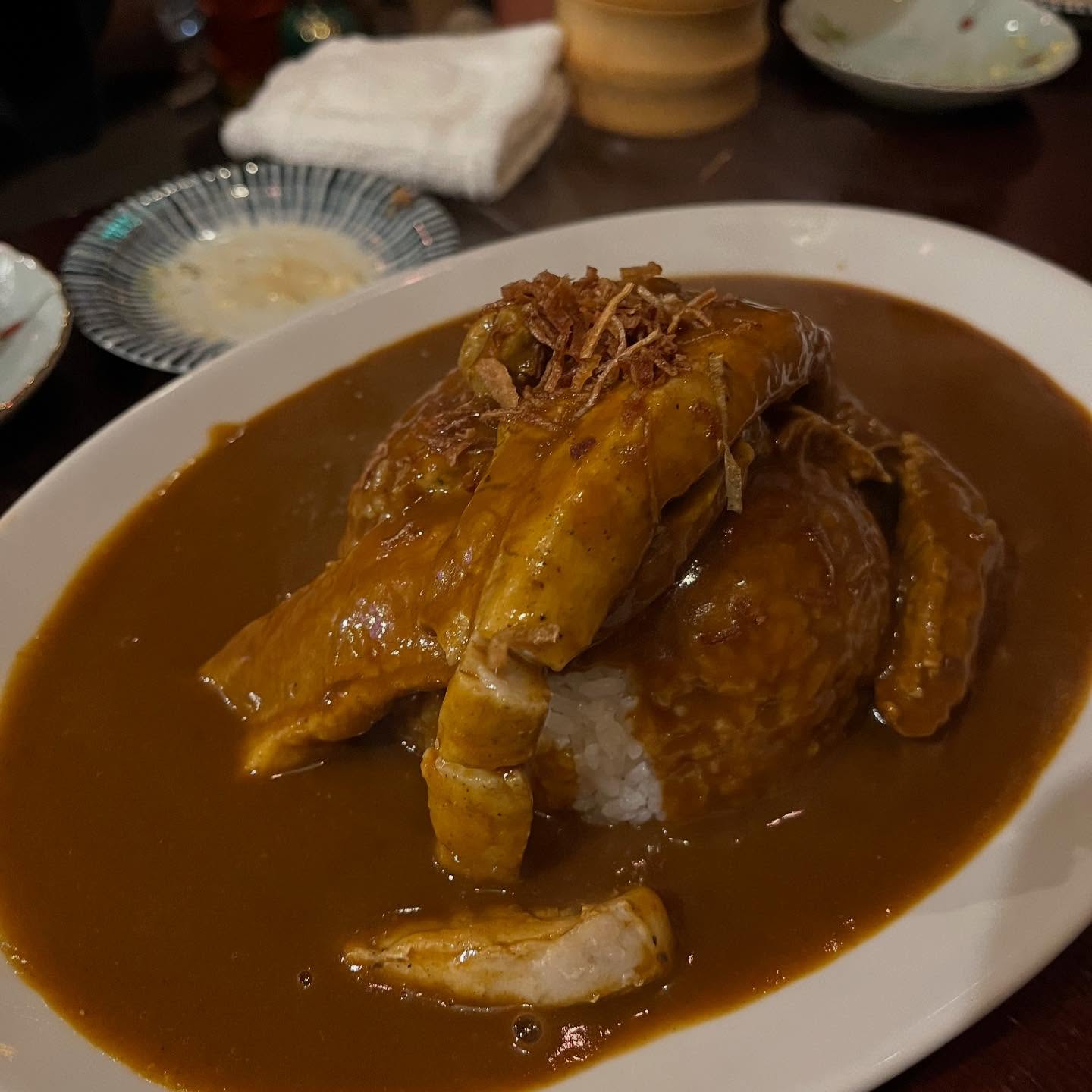 #恵比寿 #ごはん #カレー #ポークカレー #肉増し #大きすぎるポークが酔っ払いくらいベロンとライスに寄りかかってる #ホロホロにほぐれていくらでも食べられる #グルメ #food