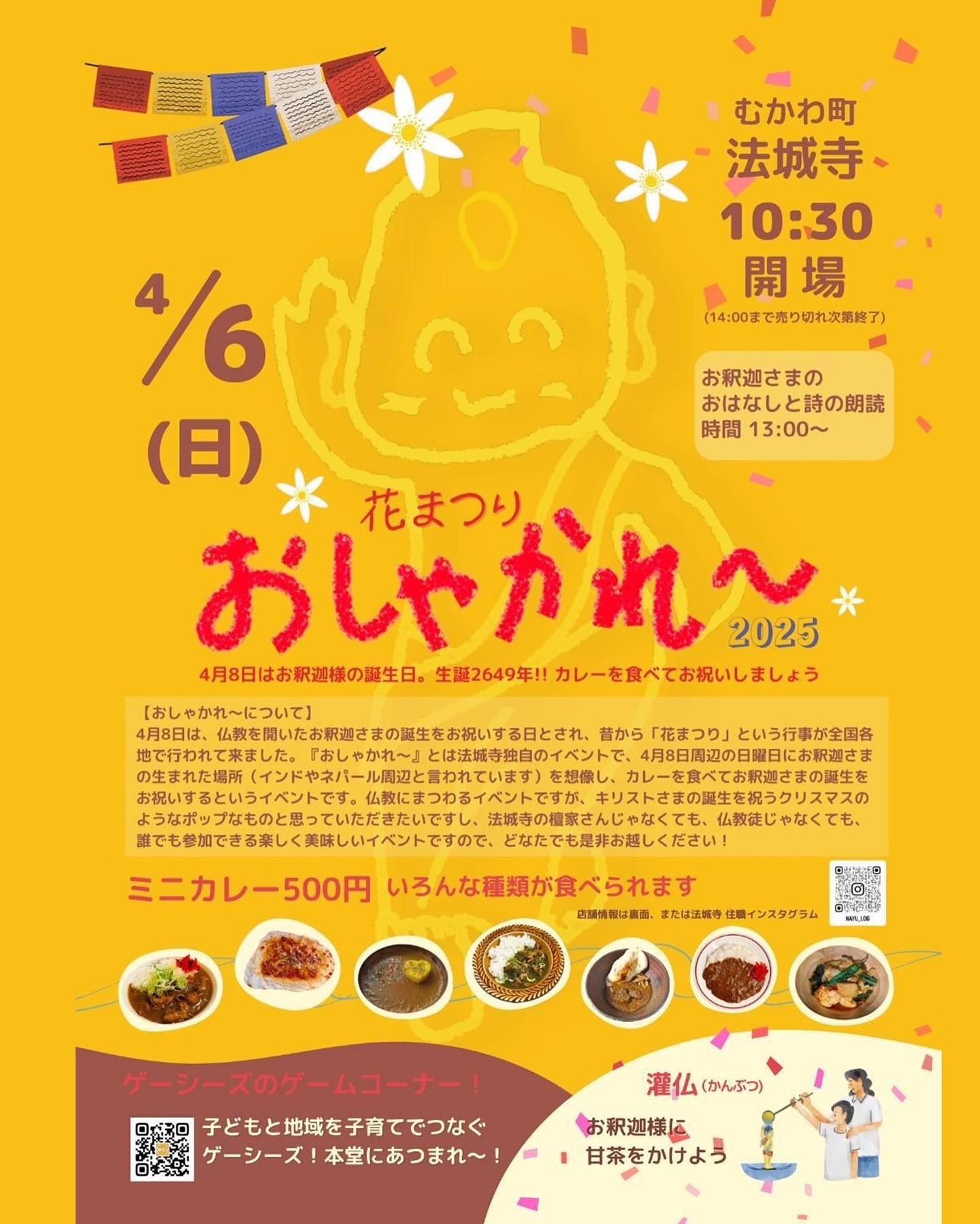 4月6日(日)法城寺さん(@nayu_log)で行われる🌸花まつり おしゃかれ〜 2025🌸にて「鹿肉カレー」を出します!