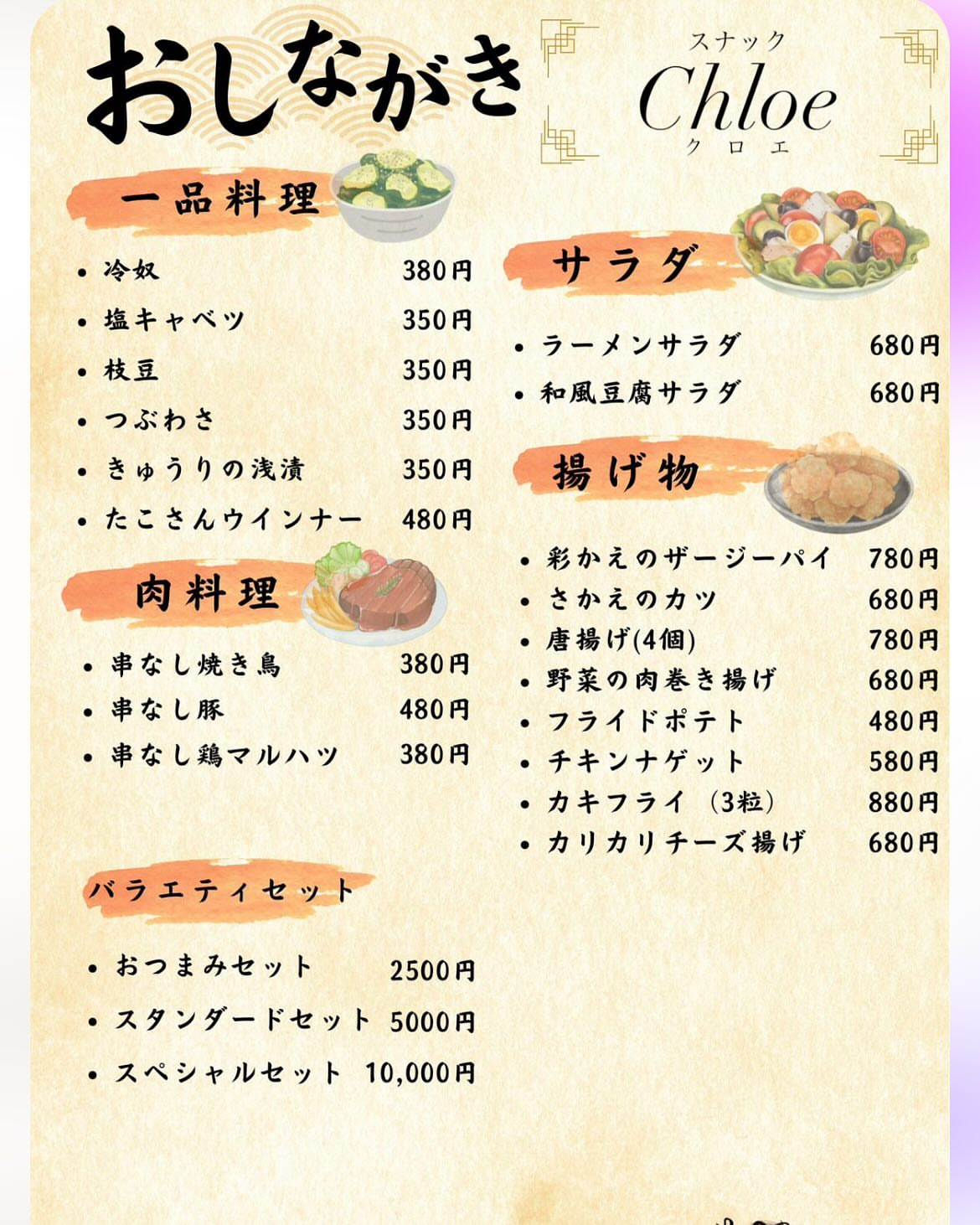 彩さえさんのテイクアウトメニューです☺️