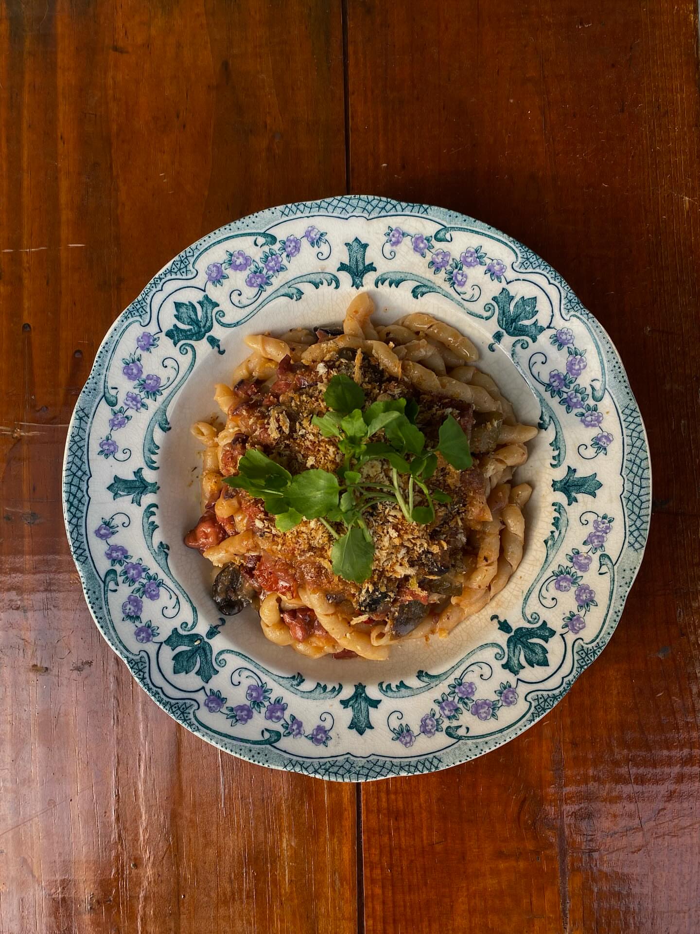 タコ、茄子、トマト、オリーブ、松の実、ローストパン粉、ブジアーテ🇮🇹