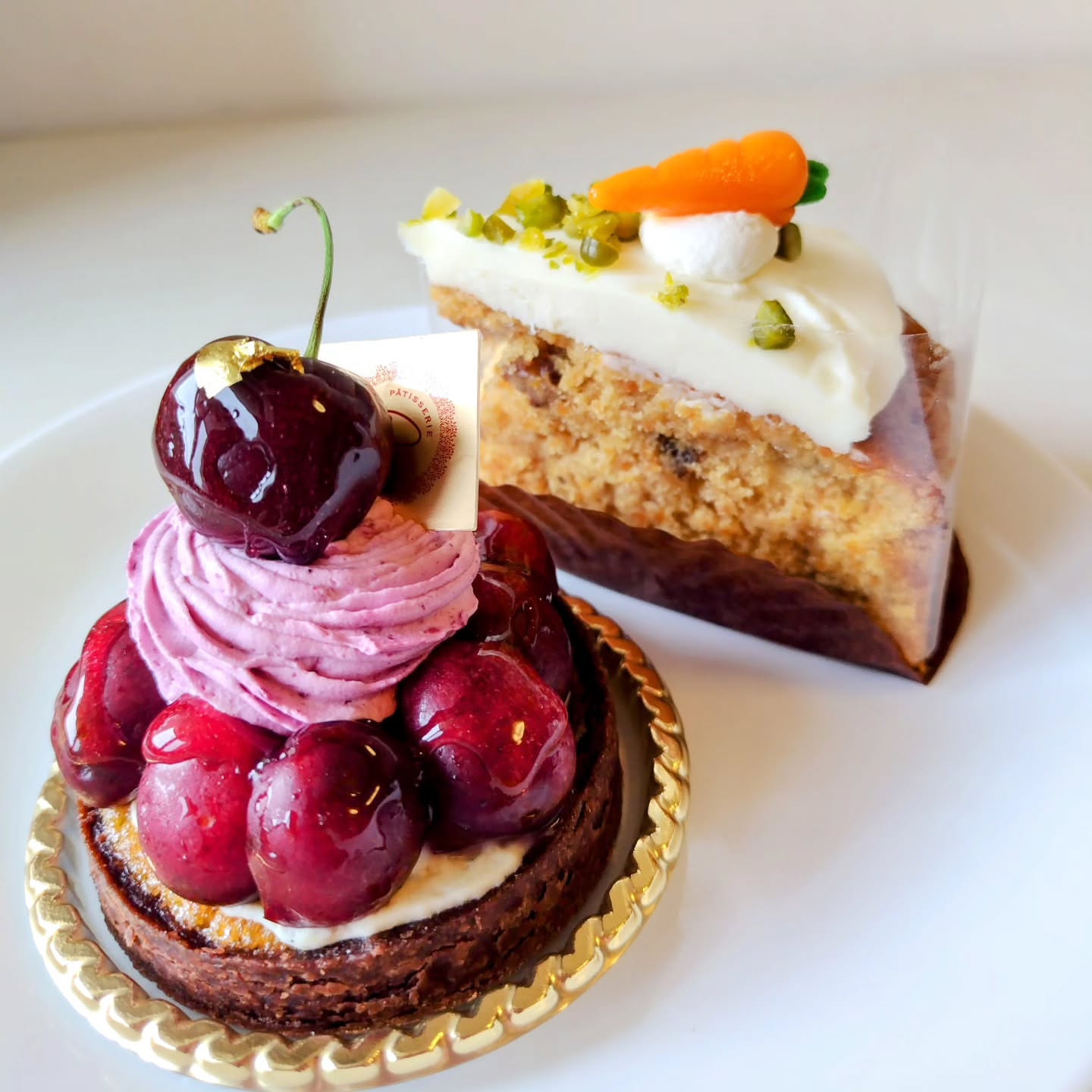 九品仏の #パティスリーエール の #アメリカンチェリーのタルト と、#キャロットケーキ 💛