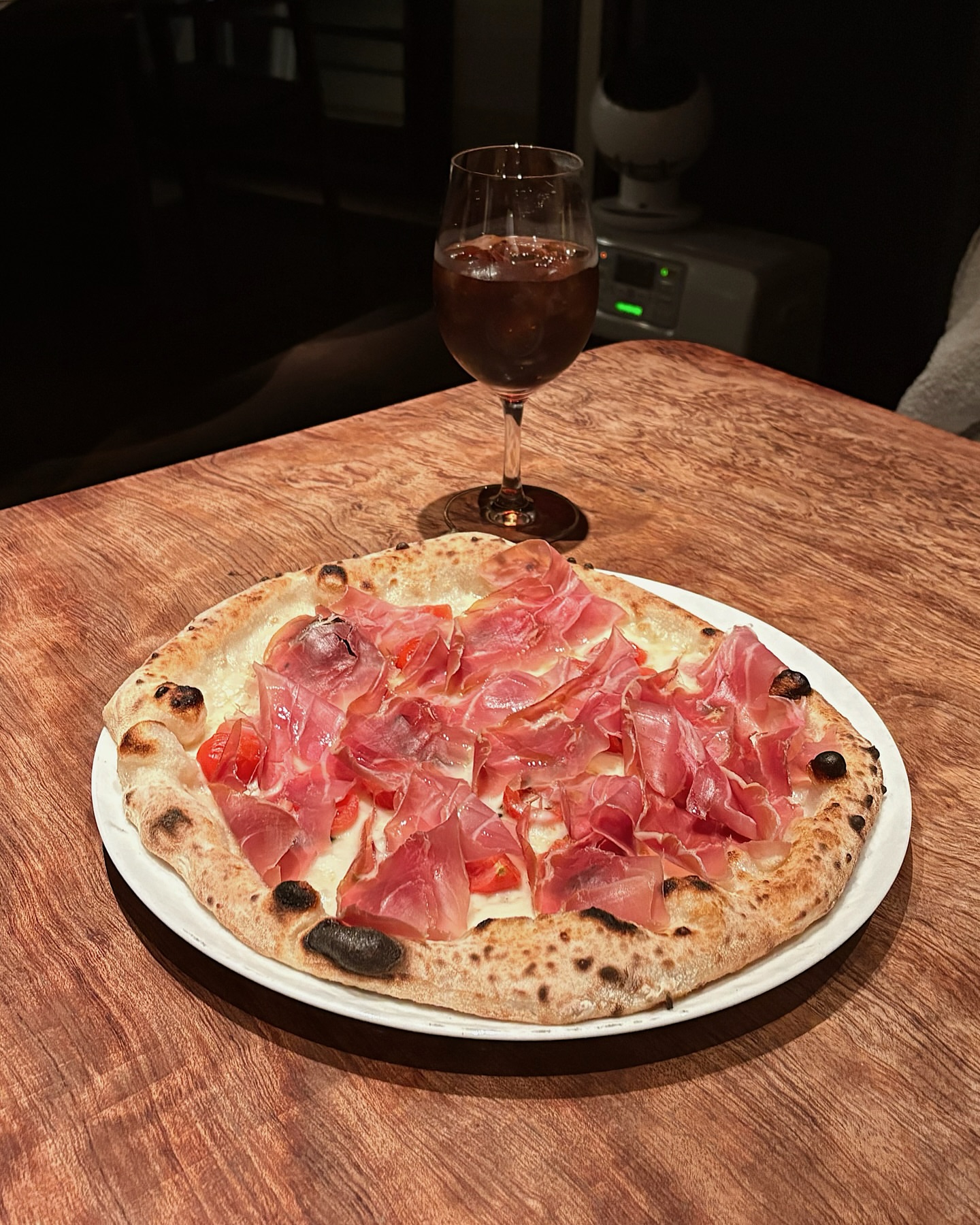 金沢・東山の本格ナポリピザ店PERCHÉは、ピザ一点に特化した店です。窯焼きの薄焼き生地は大きく食べ応えがあり、焼き野菜は塩で味わうユニークさが魅力。カブは特に甘いです。定番のマルゲリータとピスタチオ入りハムのビスマルクがおすすめ。パスタ・リゾットはありません。ナポリの微発泡赤ワインも楽しめます。