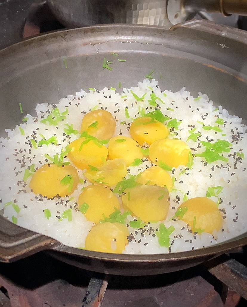 栗ご飯に子持ち鮎。