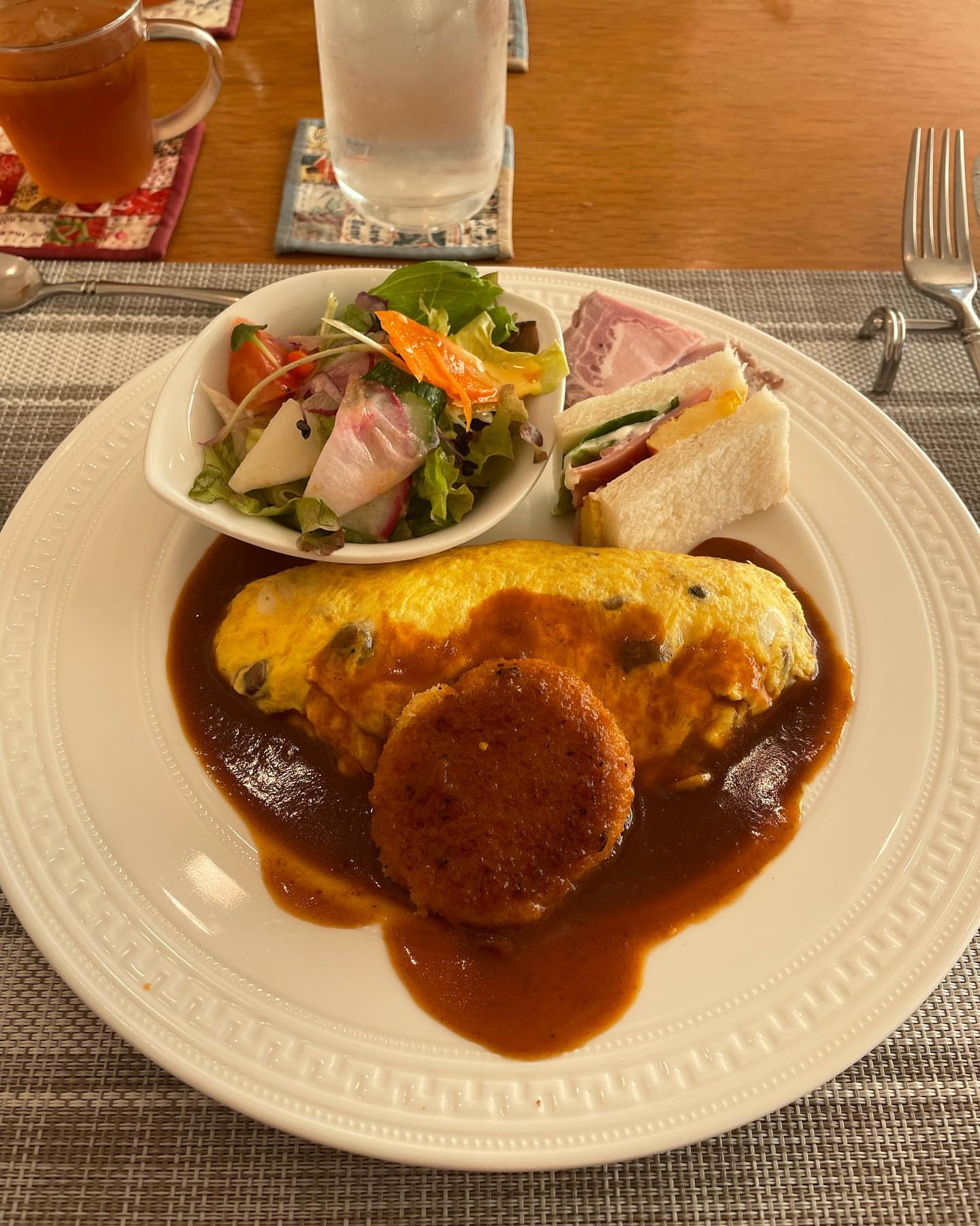 付け合わせのサラダとサンドイッチも