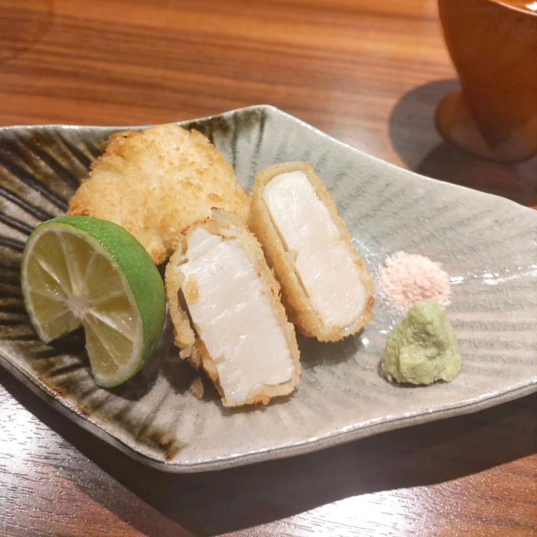 鱧と帆立のフライを塩と山葵で😋