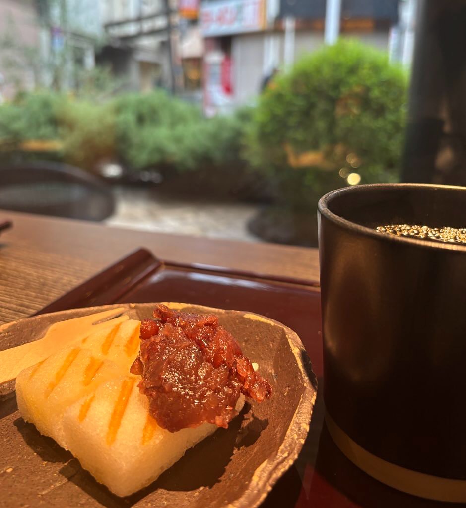 明石屋エルムンドの焼き軽羹にあんこトッピング。軽羹にバター載っけて焼くなんて…コレは法律的に大丈夫なのか心配になる美味さ。