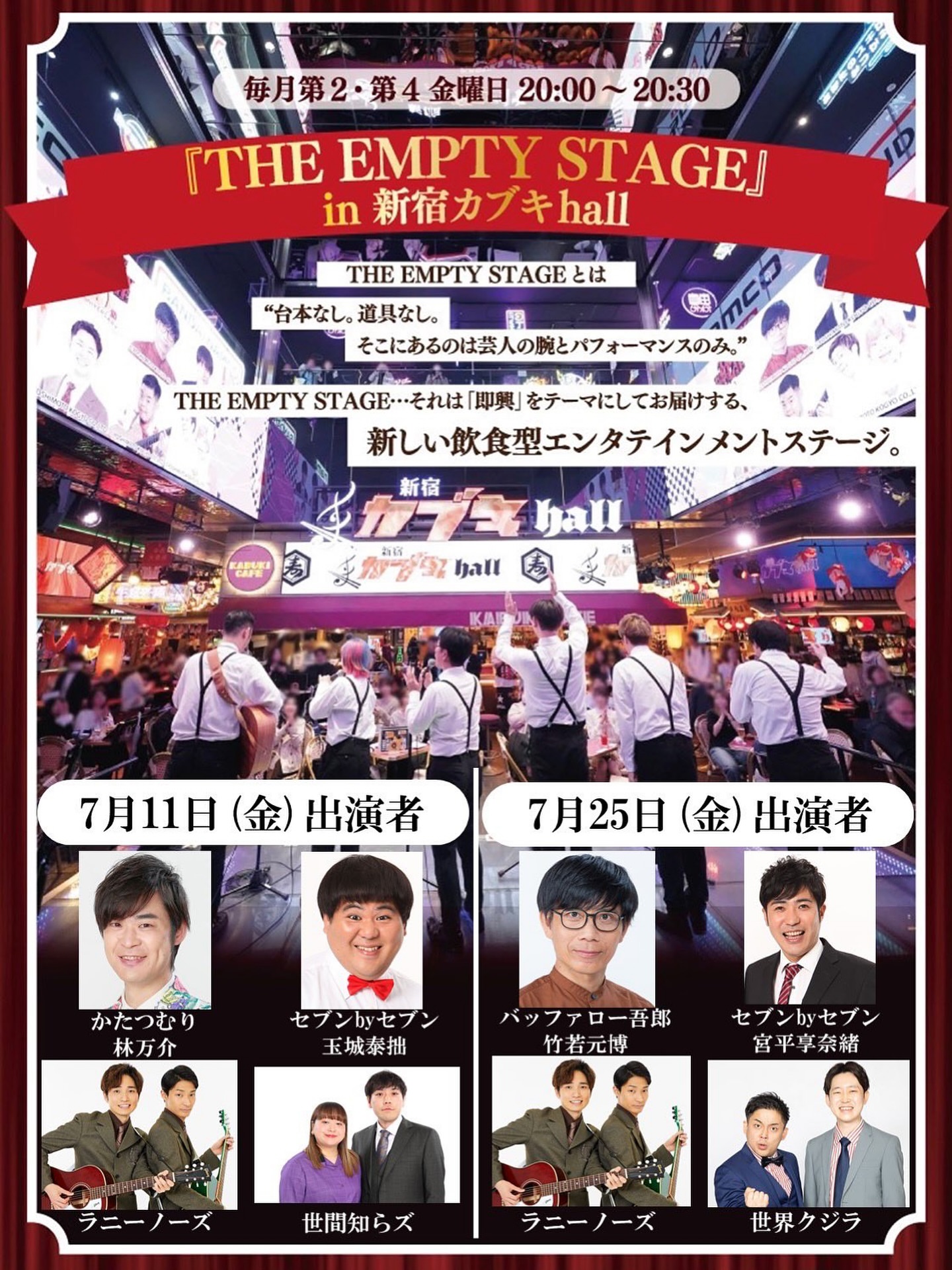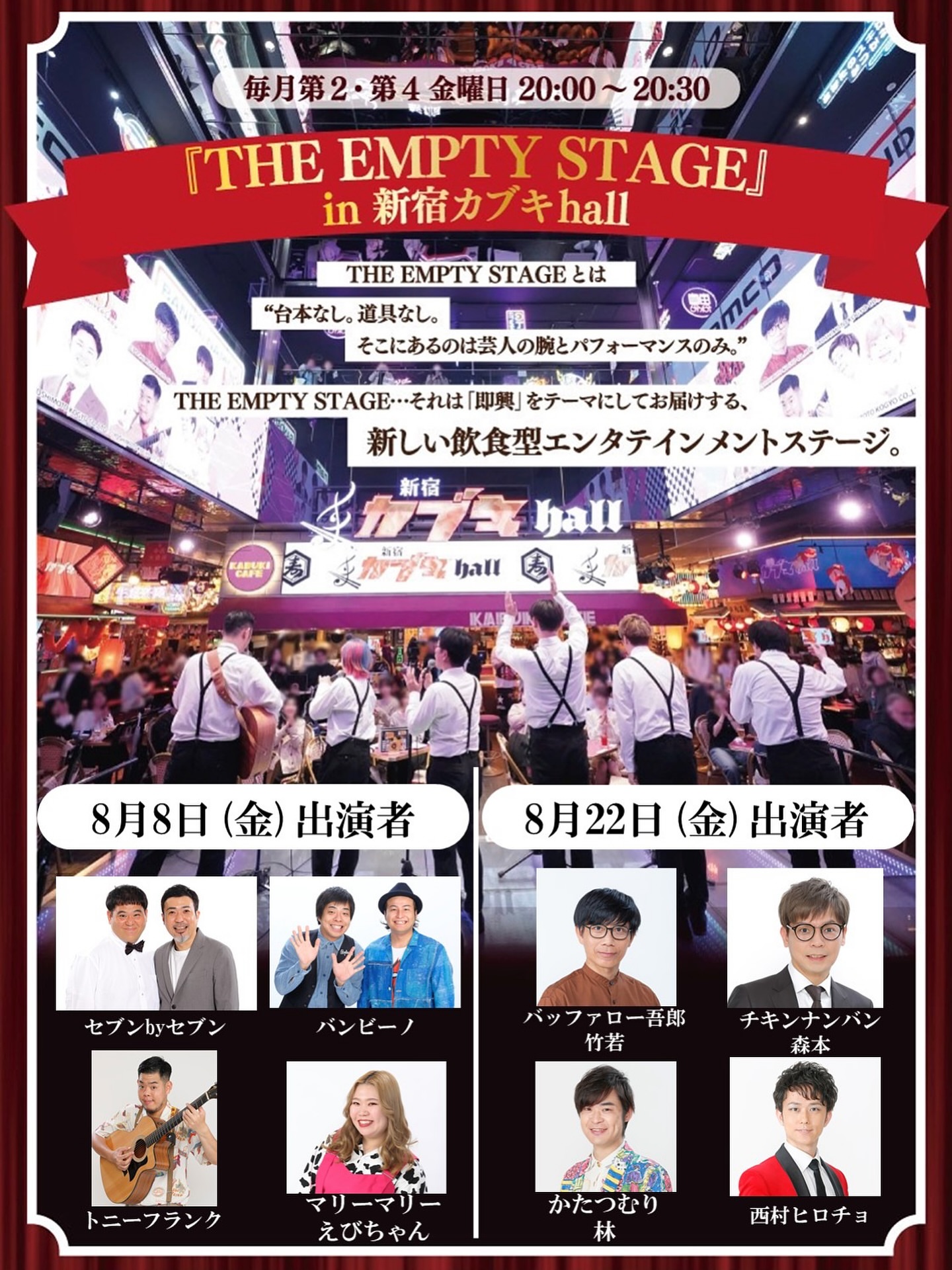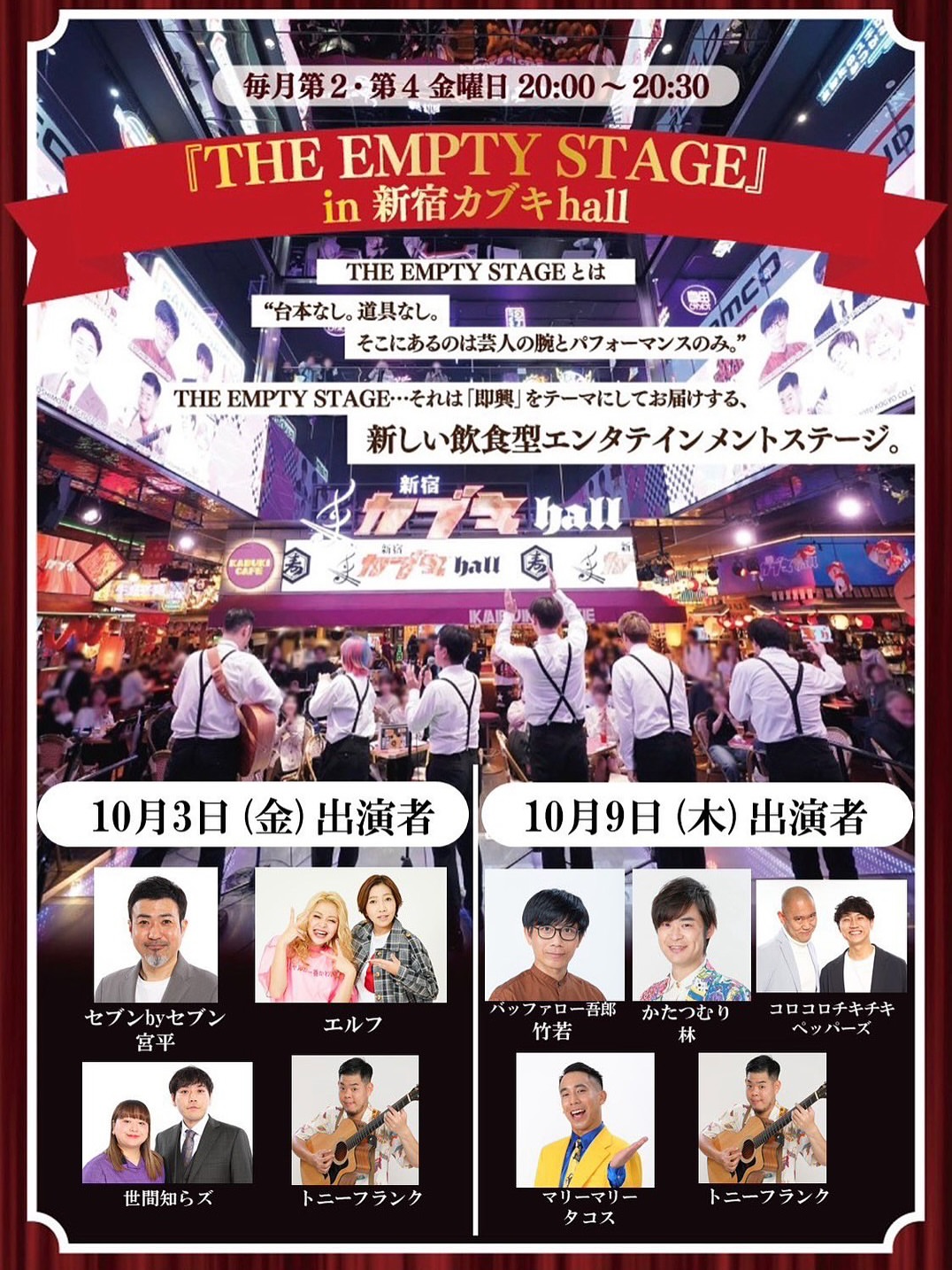 吉本興業がお届けする即興エンターテイメントショー『THE EMPTY STAGE』の10周年を記念し、東急歌舞伎町タワーにて1年間、毎月第2・4金曜日に無料公演...
