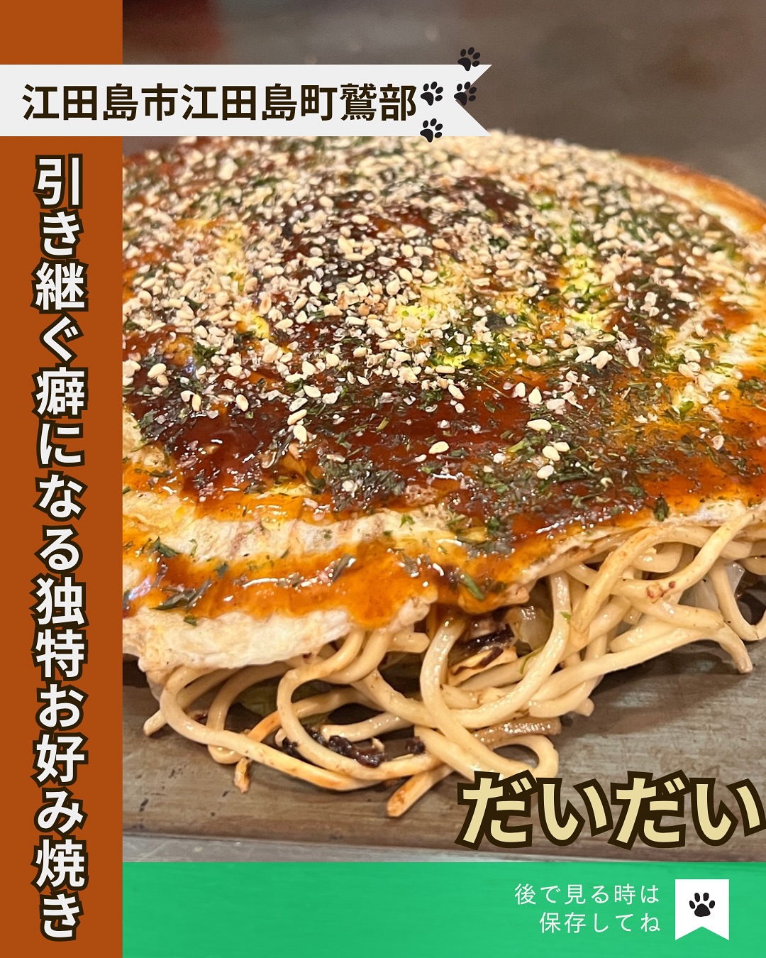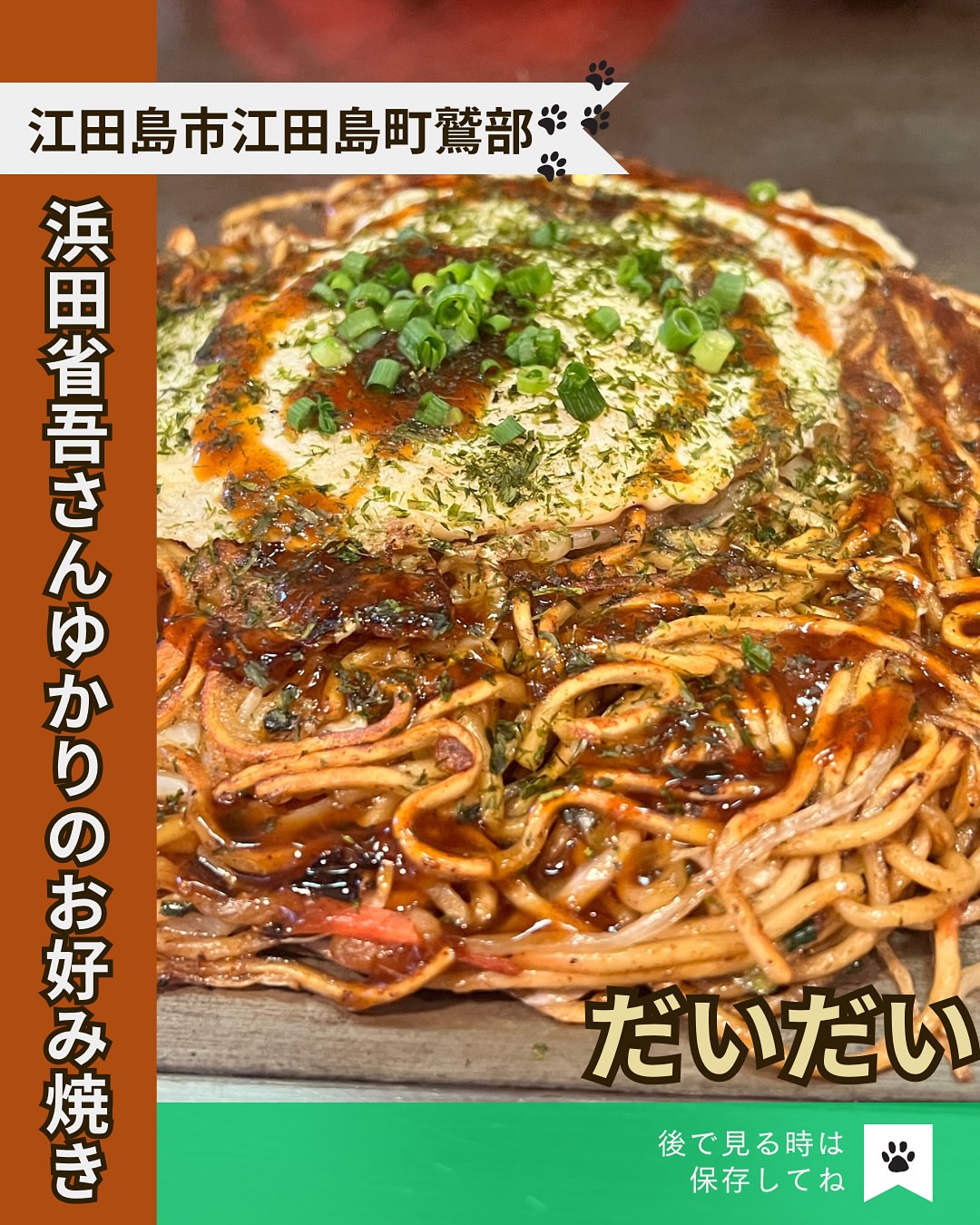 浜田省吾さんが食べていたというお好み焼き店『高田』の味を引き継いだお好み焼き、だいだいさんのオリジナルの...