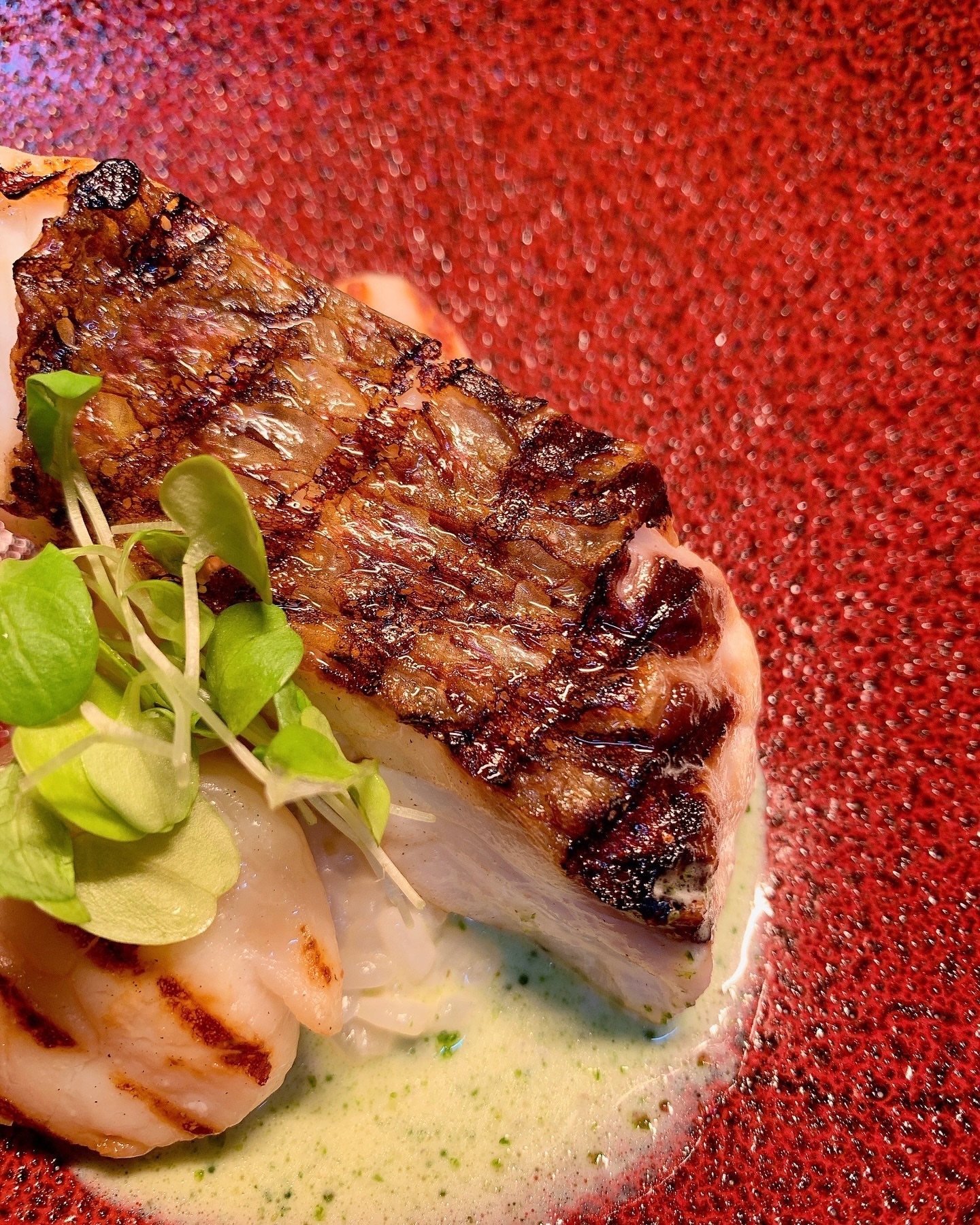 『愛媛県産真鯛と北海道産ホタテ貝のグリエ ソースヴェール』