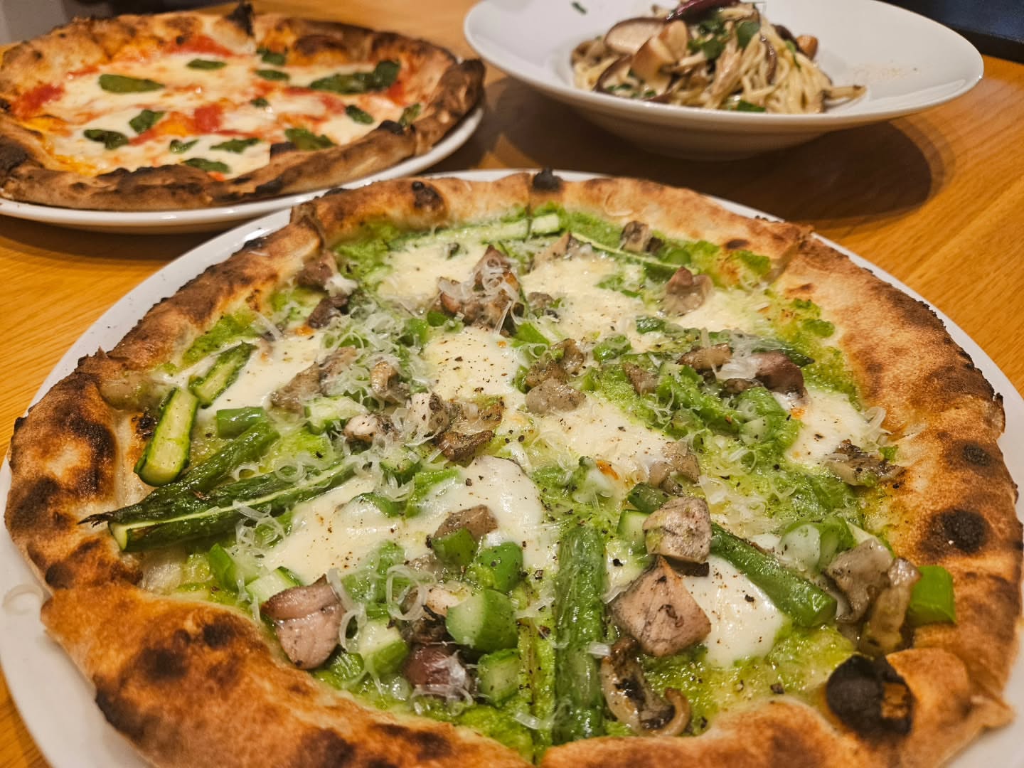 " 新得地鶏の炭火焼きと十勝産アスパラガスのピッツァ "