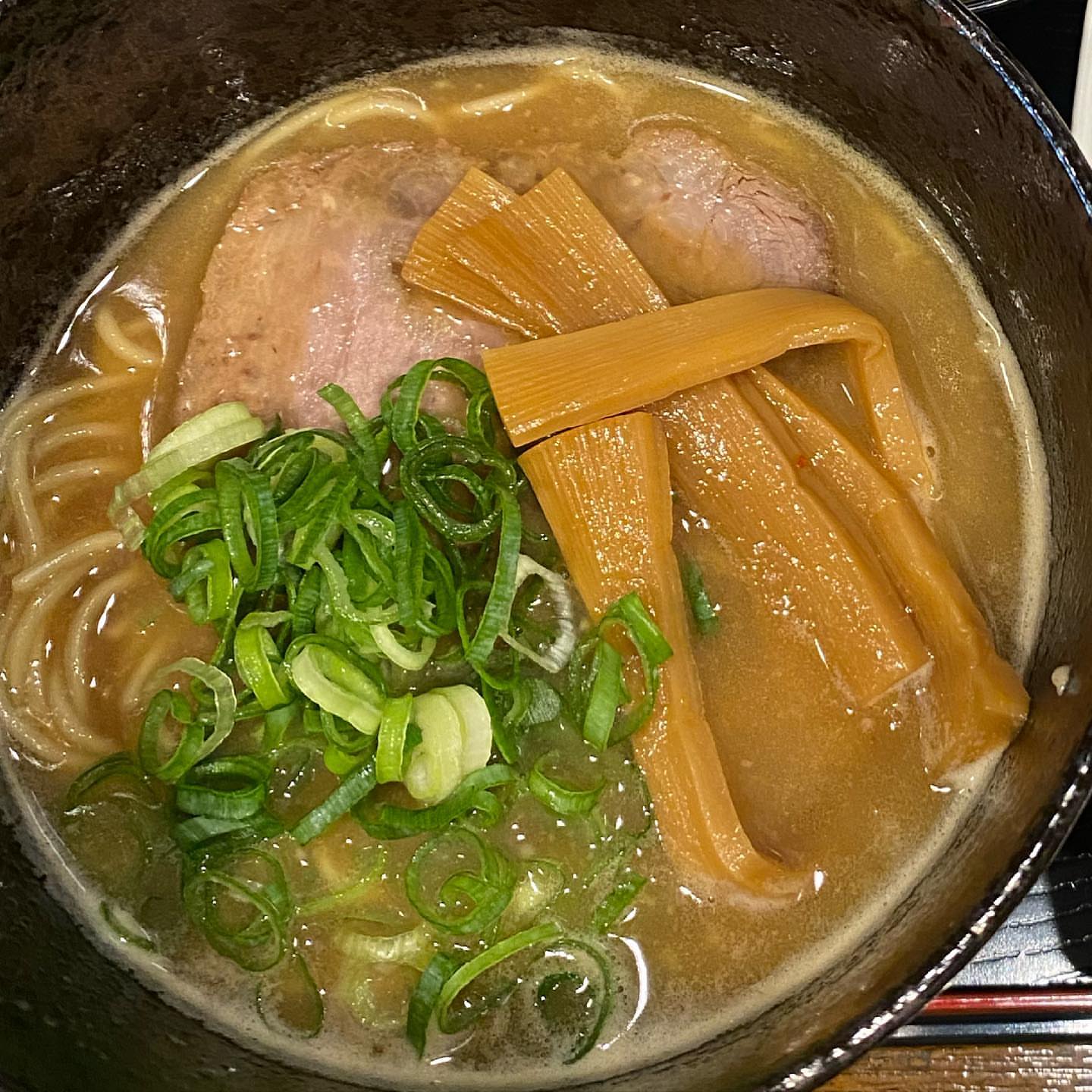 スープは粘度高めのトロっとした口当たりのものです。
