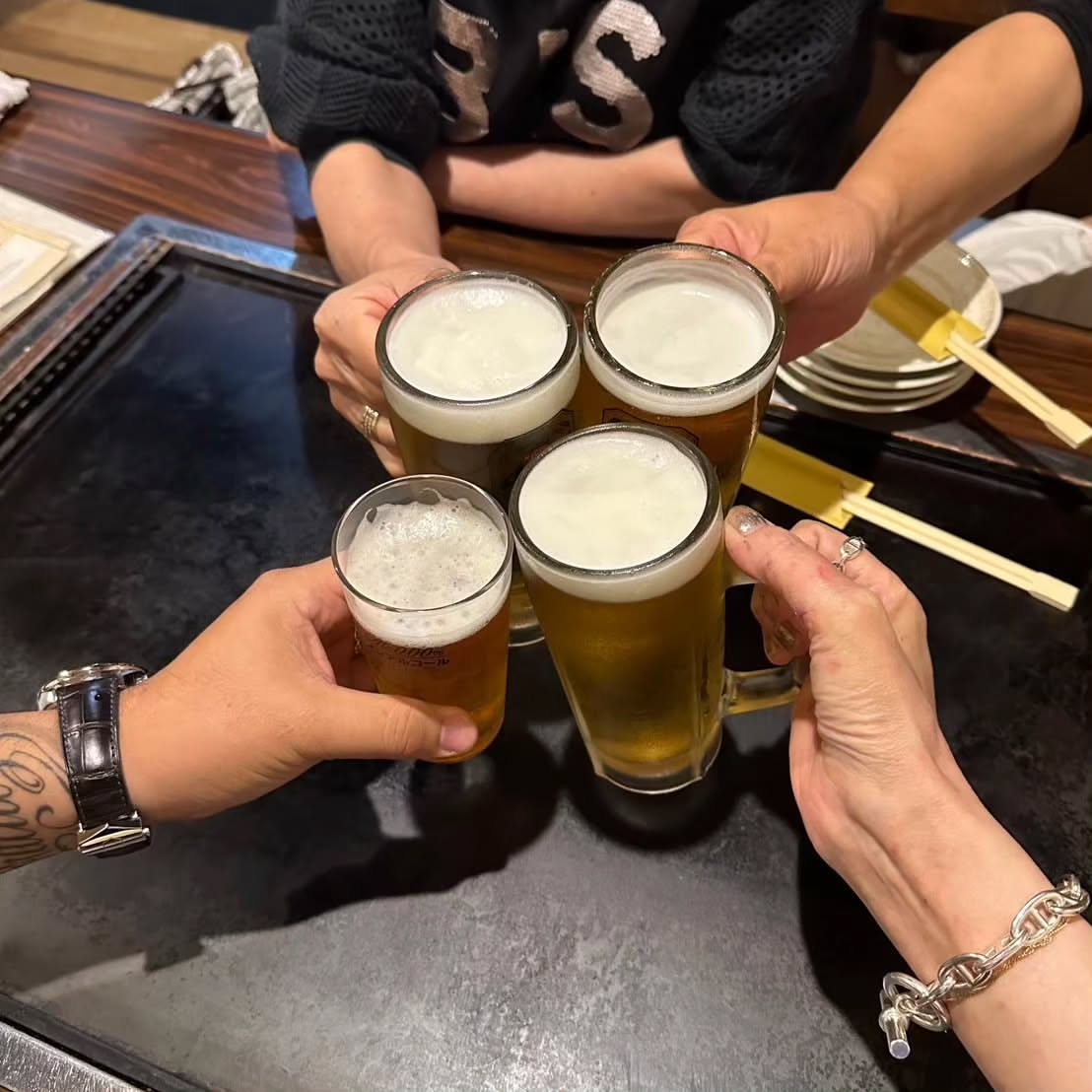 鉄板前のカウンター席にて