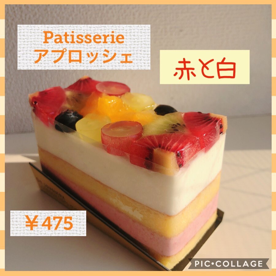 パティスリーアプロッシェのケーキ。赤と白はケーキの名前です!