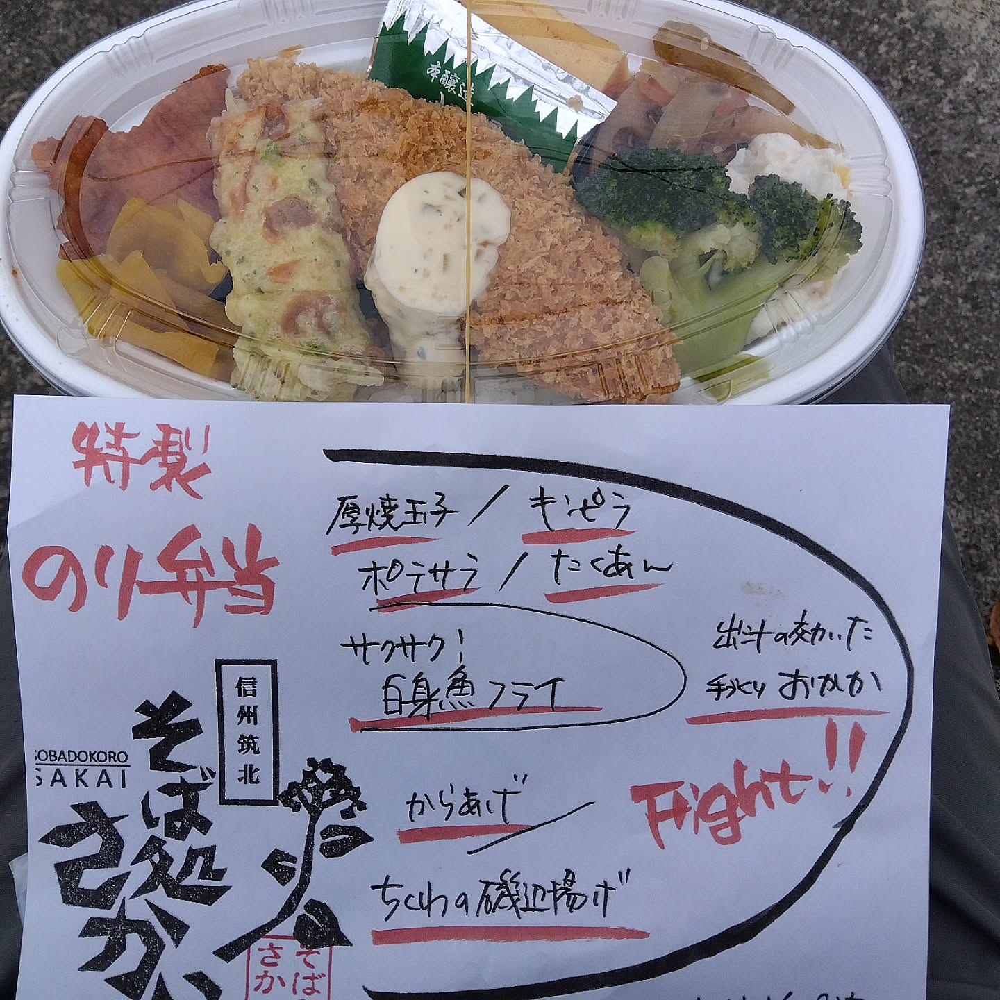 昼食はグラウンド近くにある「そば処 さかい」さんにお弁当を作っていただきました✨
