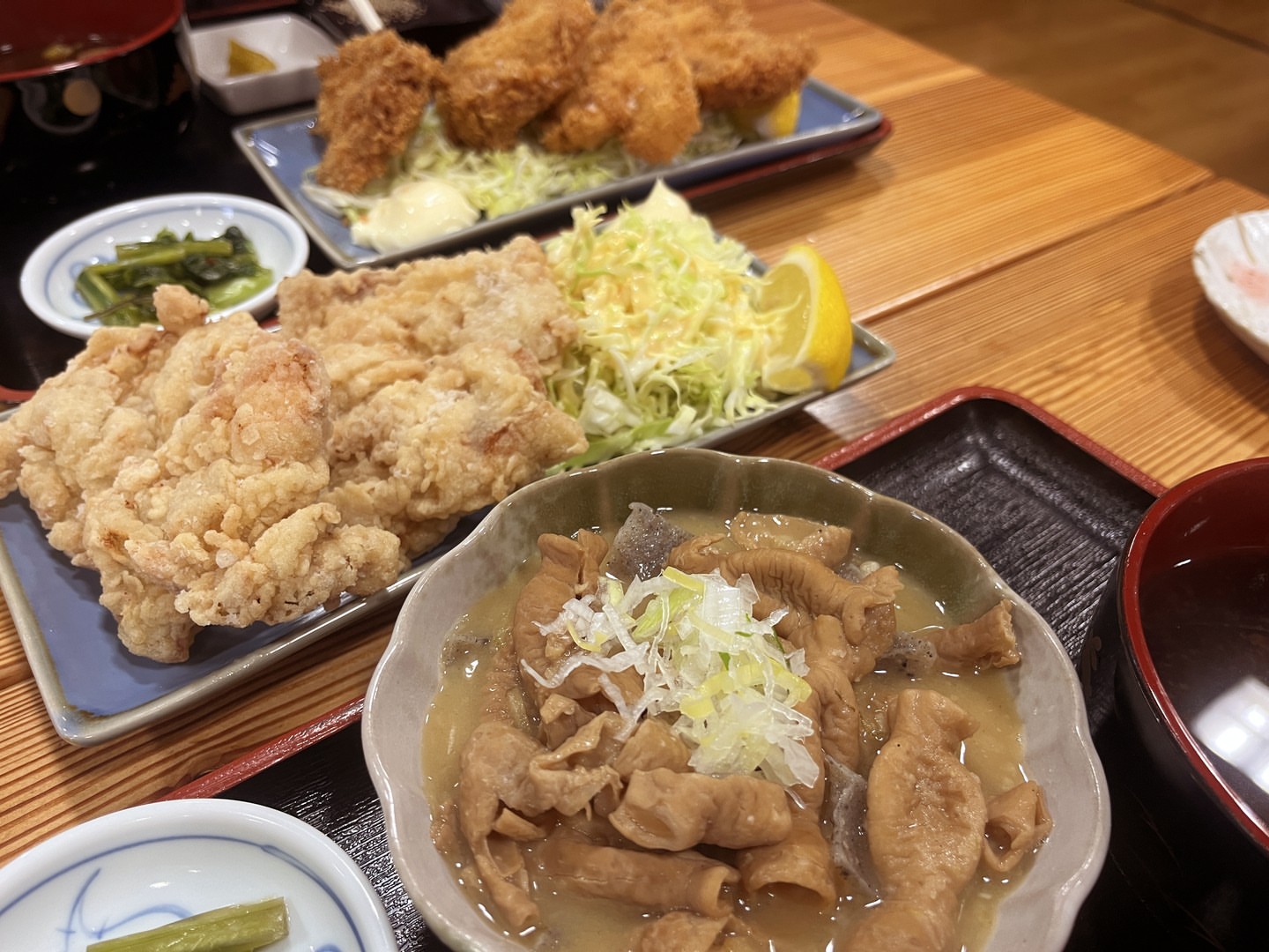 写真は手前から『もつ煮込み』『からあげ』『チキンカツ』です✨