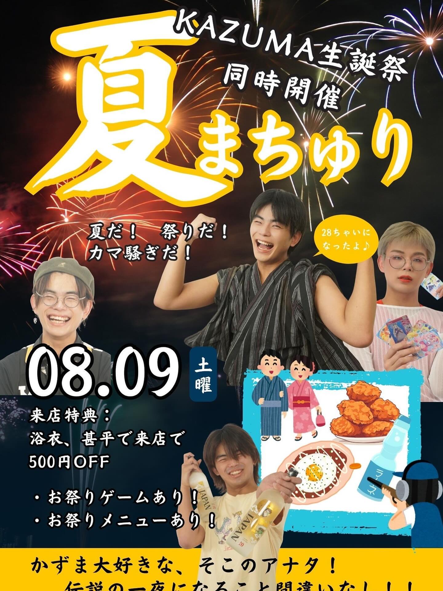 「ゲイリキ」では8/9に"カズマ28thバースデー"も行わせていただきます!