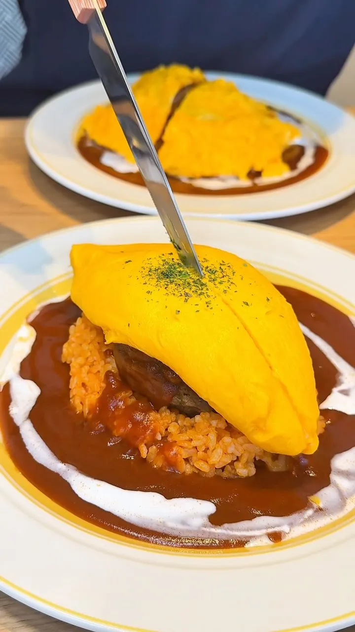 柔らかい牛ホホ肉をガッツリ入れた贅沢オムライス!特製デミグラスとの相性も最高で美味しすぎた!東京の国分寺にあるeggg cafeっていうお店 #東京グルメ #tiktokfood #japanfood