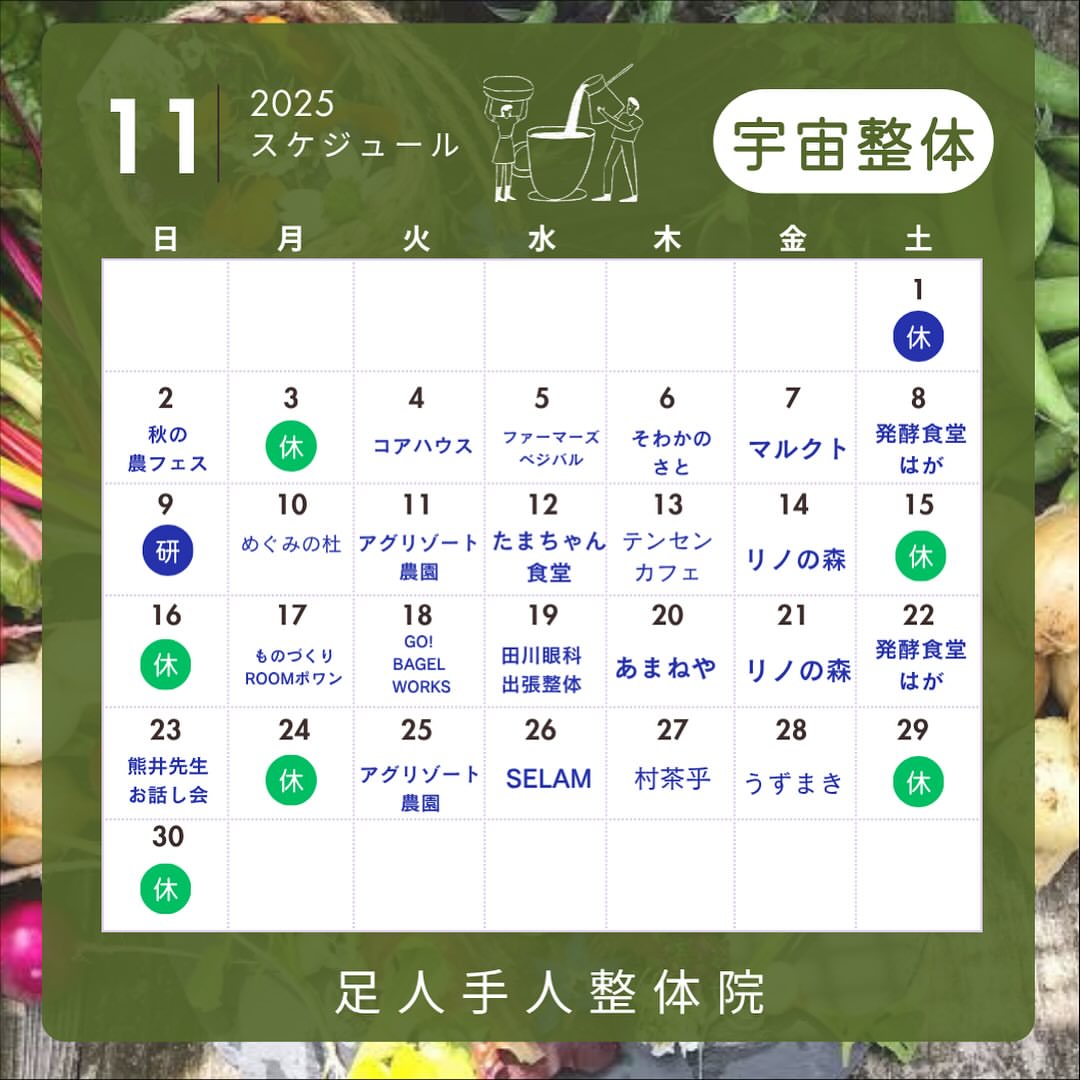 【11月スケジュール】【宇宙整体】【足人手人】