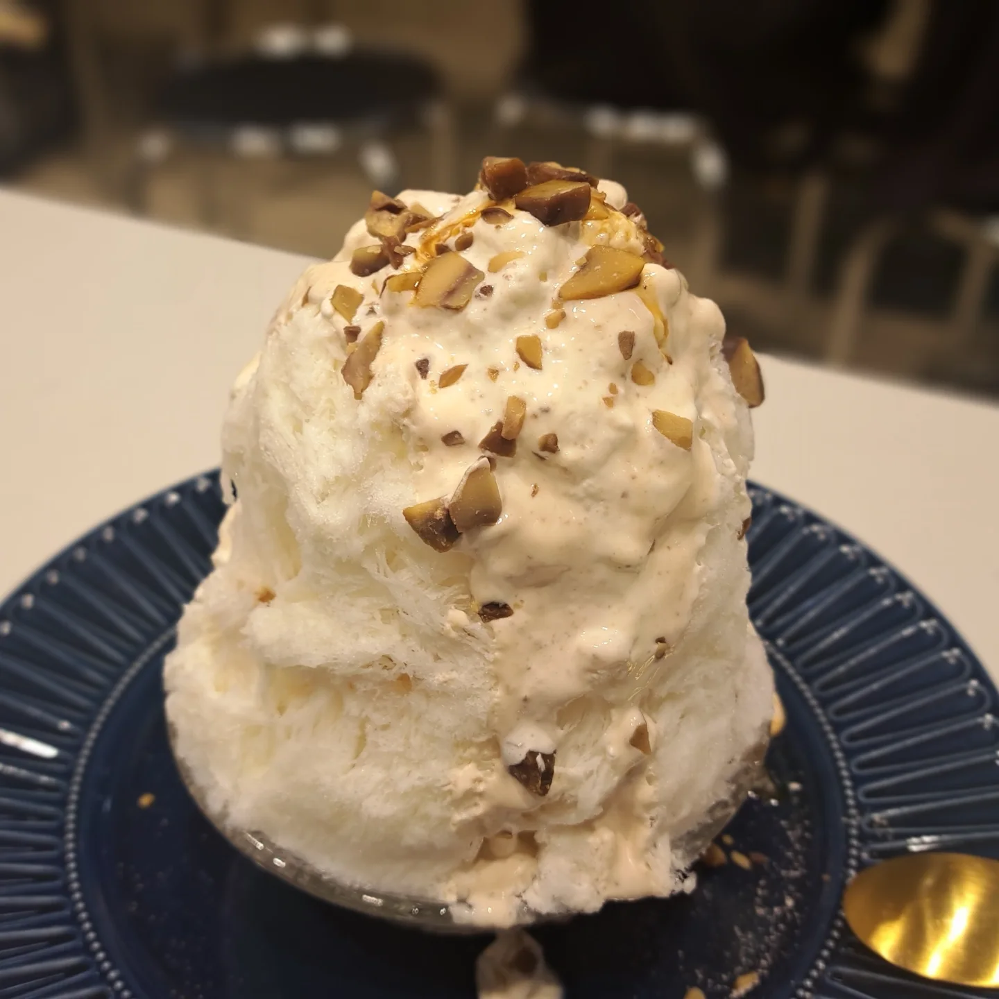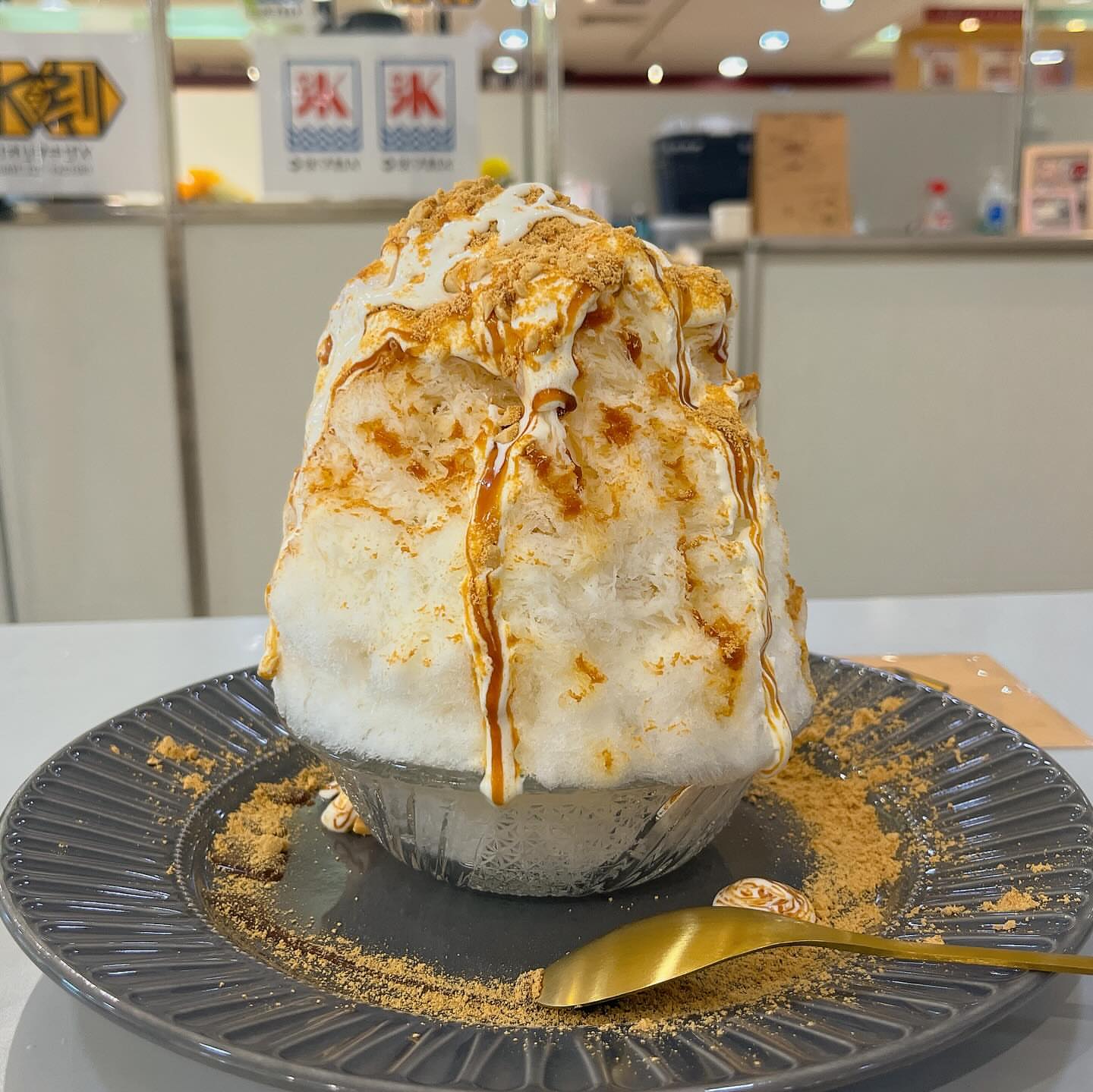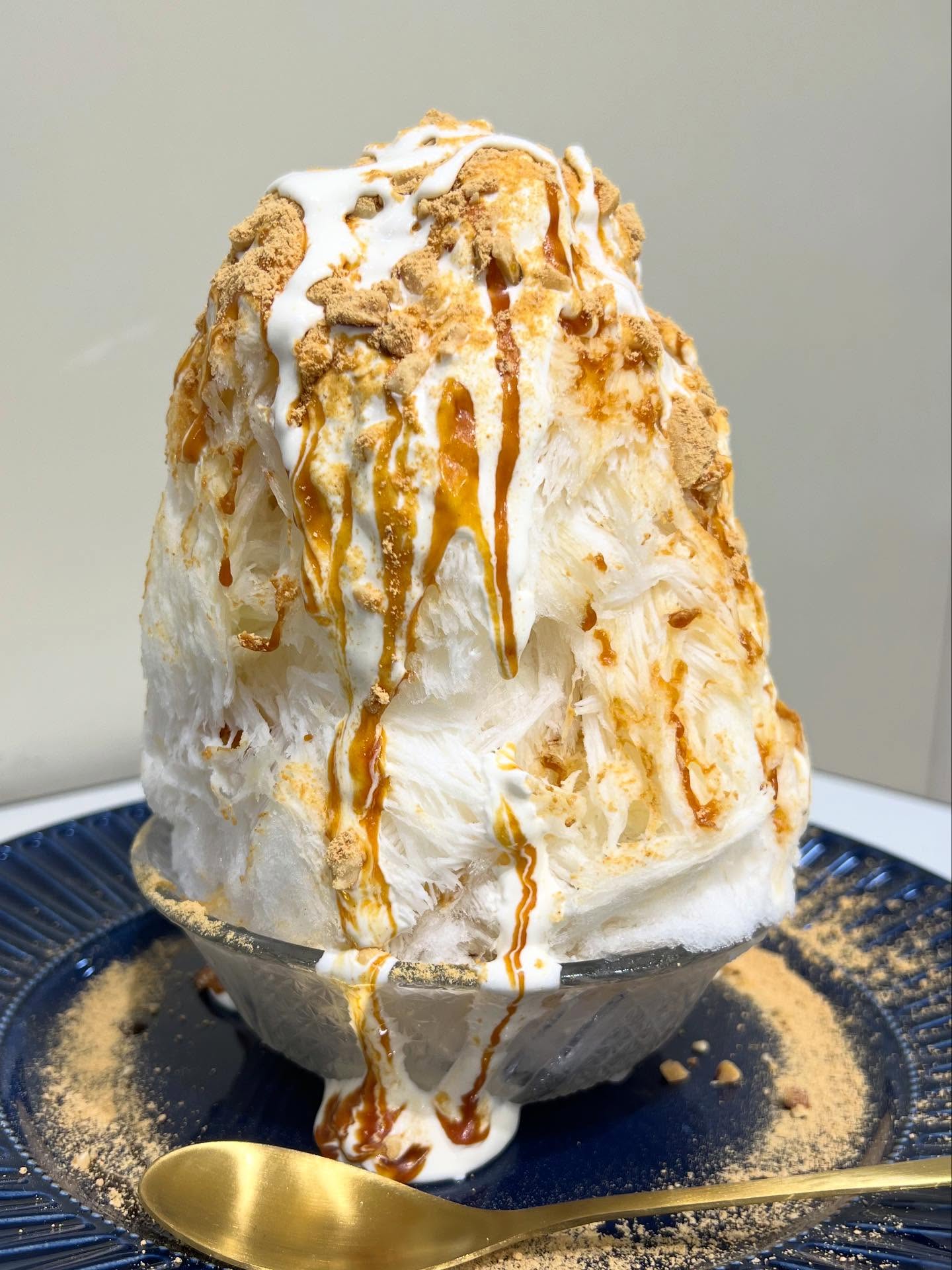 ふわふわ氷にオリジナルクリームときなこがバッサー👏むせるの注意⚠️だよーって言ってくれはってんけど...