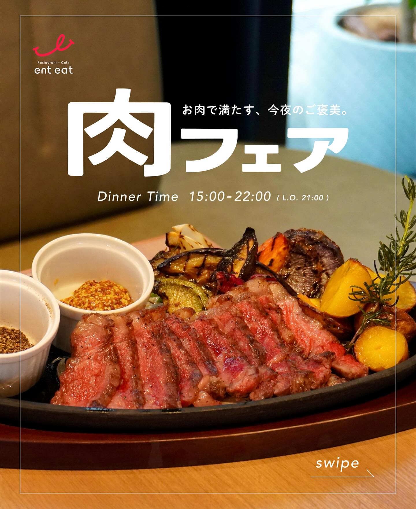 ホテル2階レストラン「ent eat」では、ランチやディナーだけでなく、カフェ利用のご来店も大歓迎。