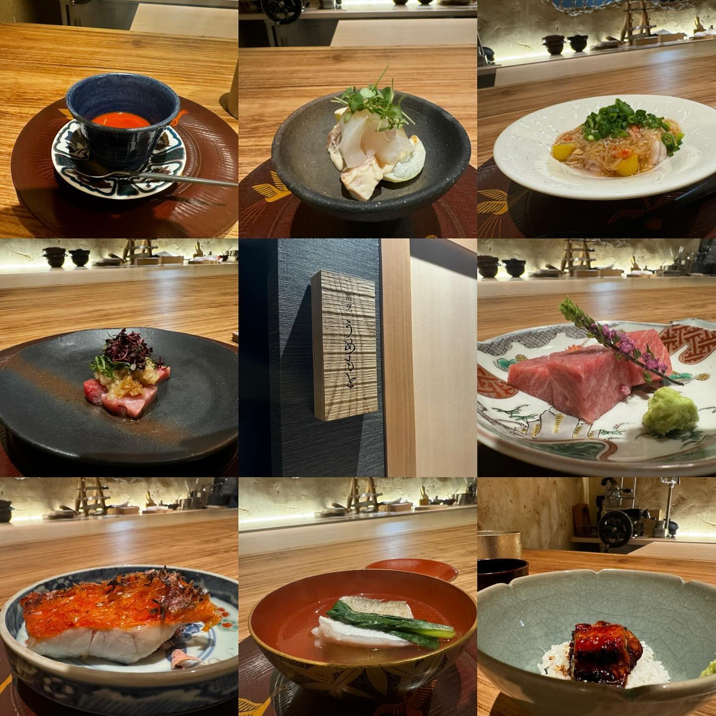 名古屋・東区の隠れ家割烹 うめもとです。和モダンで洗練された空間を活かす旬の素材の独創的なコース料理を提供します。トラフグやあか牛ヒレ、うなぎ丼など贅沢な一品が続き、海鮮丼の追加も選べます。完全予約制。