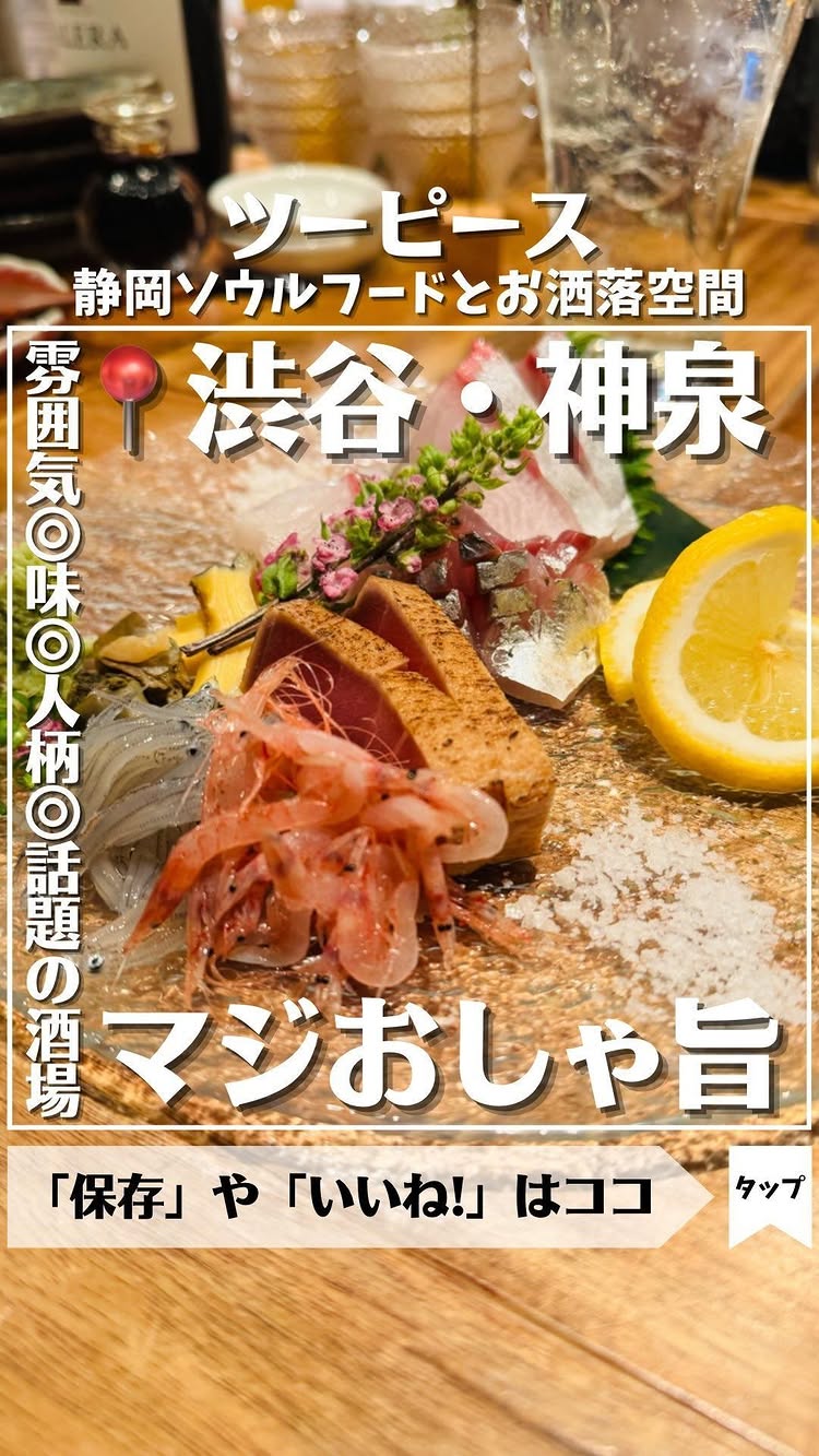 渋谷駅から徒歩10分圏内の路地裏にある人気酒場に伺いました。その名も「ツーピース」さん。静岡名物料理がメニュー展開されていて個人的には富士...