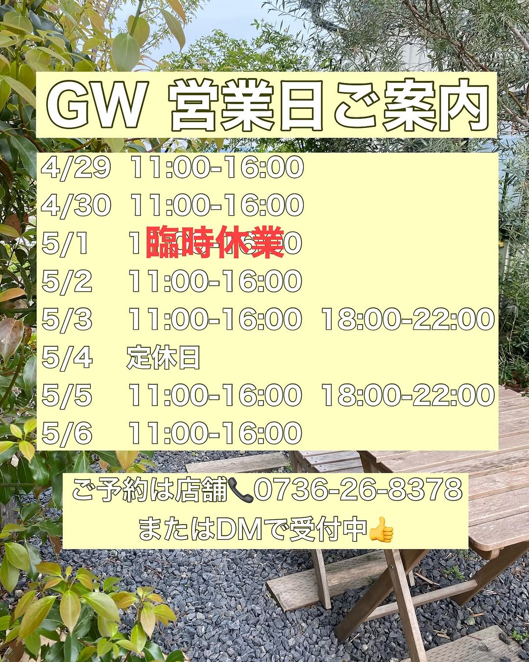 5/1は都合により臨時休業とさせていただくことになりました。