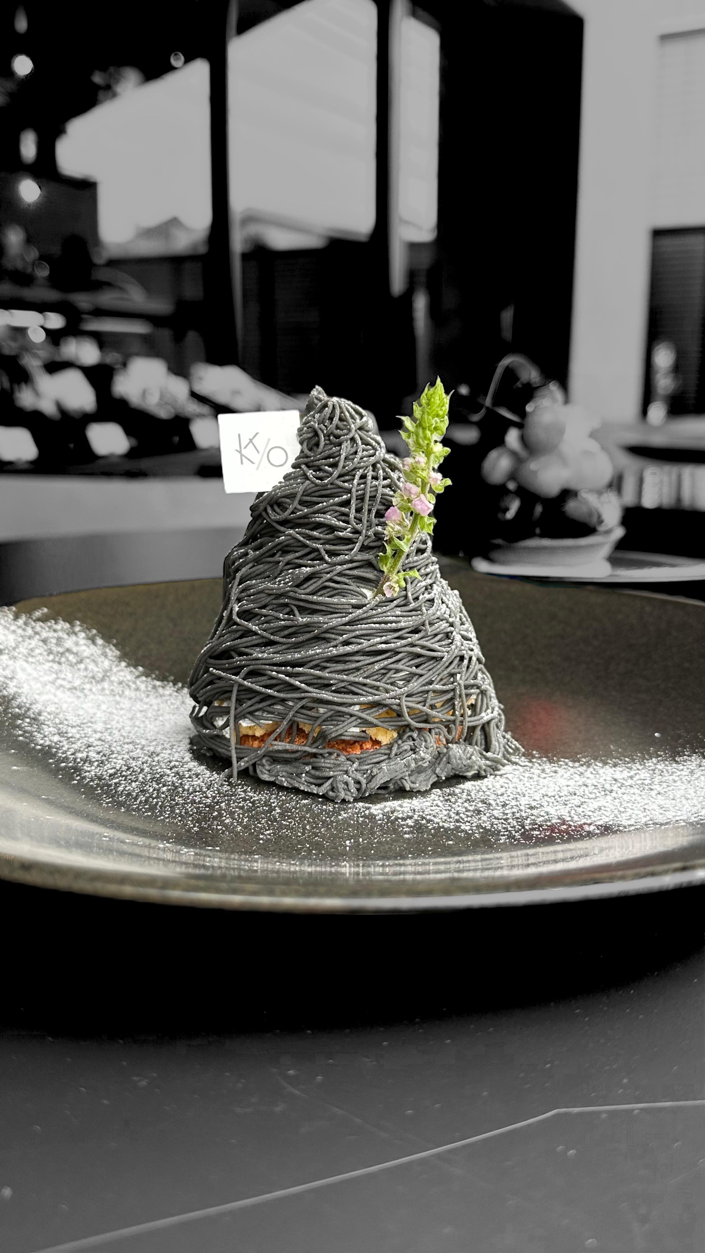 熊本産和栗クリームに四国産の竹炭を練り込み、極細に絞ったモンノワール。