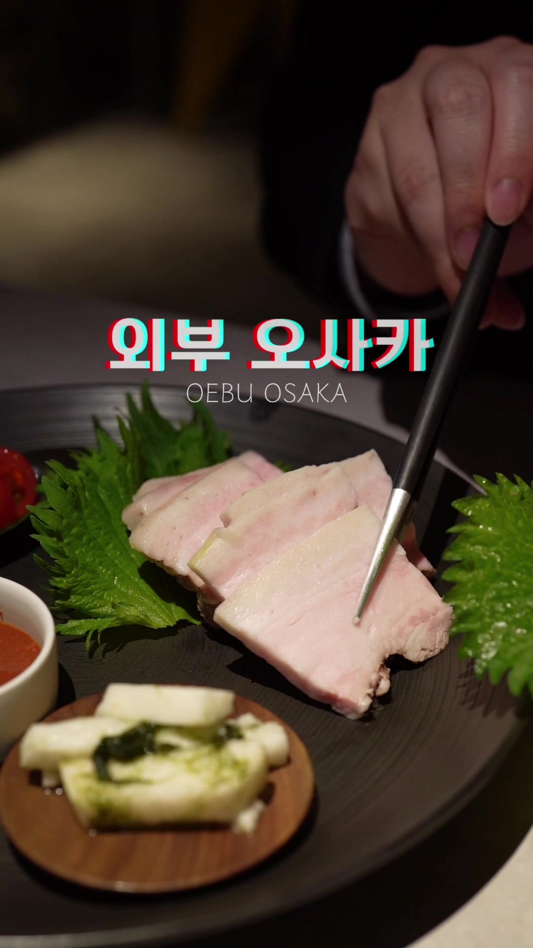 大阪・梅田の創作韓国料理店 OEBU OSAKA。65℃低温ポッサムや鯛のセンソングイなどを組み込んだ3,300円コースが魅力。全席禁煙・30席。モノトーンの落ち着いた空間はデートや女子会に最適。ランチ11:00-15:00(週末・祝日)/ディナー17:00-23:00。