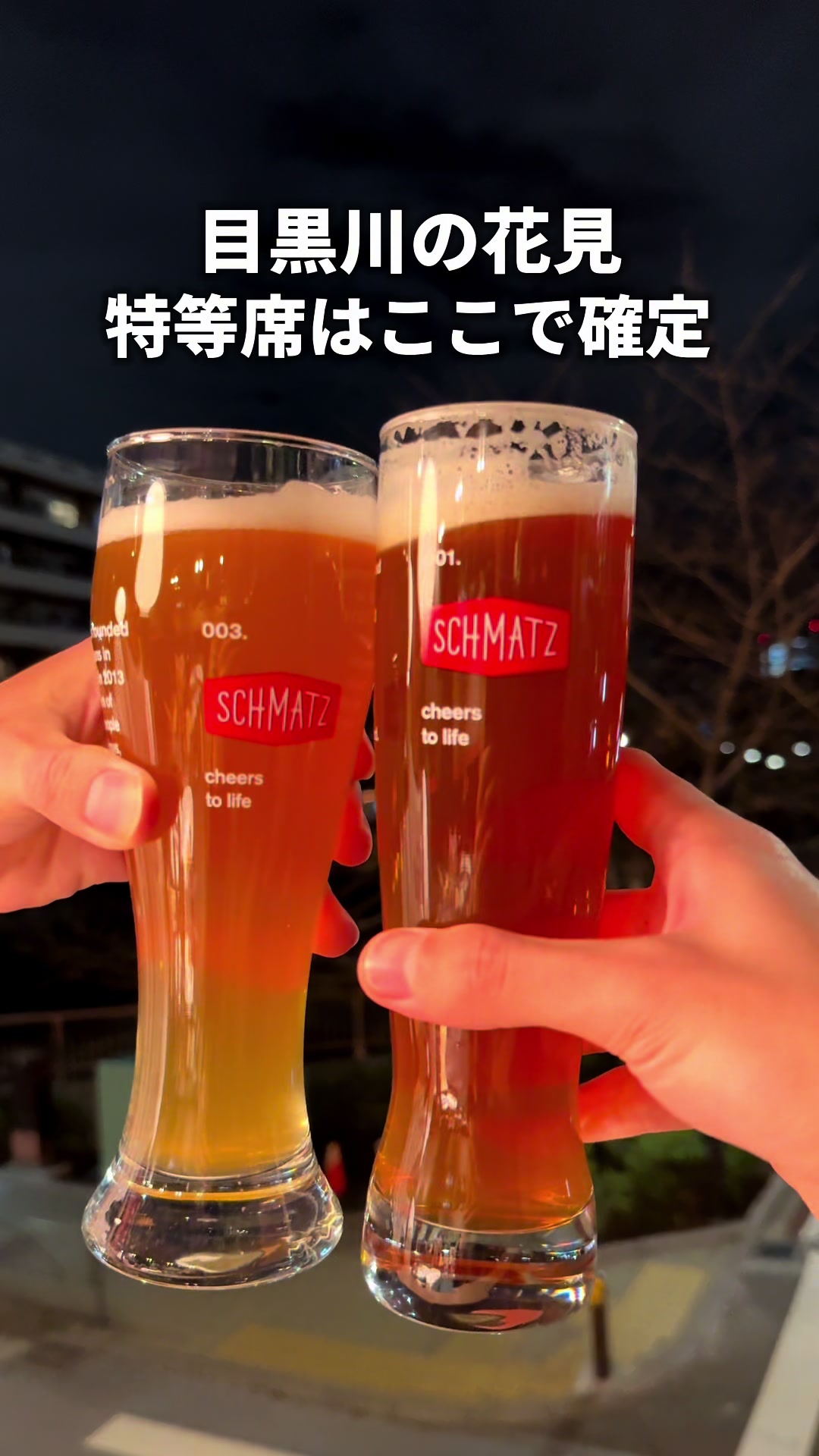 中目黒 SCHMATZはクラフトビール飲み放題5000円が魅力。IPAをはじめソーセージなどのドイツ料理も楽しめ、店頭・通販でビール購入可。店内は広く平日夜は混雑。目黒川沿いの立地で桜シーズンもおすすめ。駅徒歩1分、11:30-23:00、不定休。